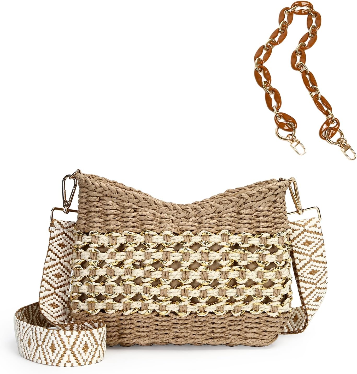 Herald Small Summer Crossbody Bags for Women, Beach Handmade Straw Woven Pocketbooks Handbag Shoulder Purse