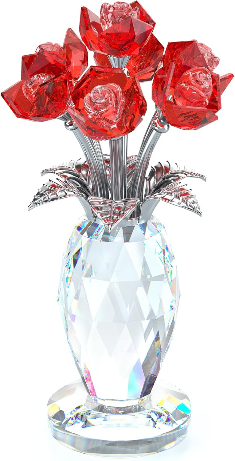 - Crystal Red Rose Figurine - Our Crystal Rose Bouquet is made of high-quality K9 crystals, clear and glittering. It consists of 7 blossoming roses, sliver stems, and faceted crystal pillars. Delicate and lovely. Size about: 7.5x14.5cm/2.9x5.7in
