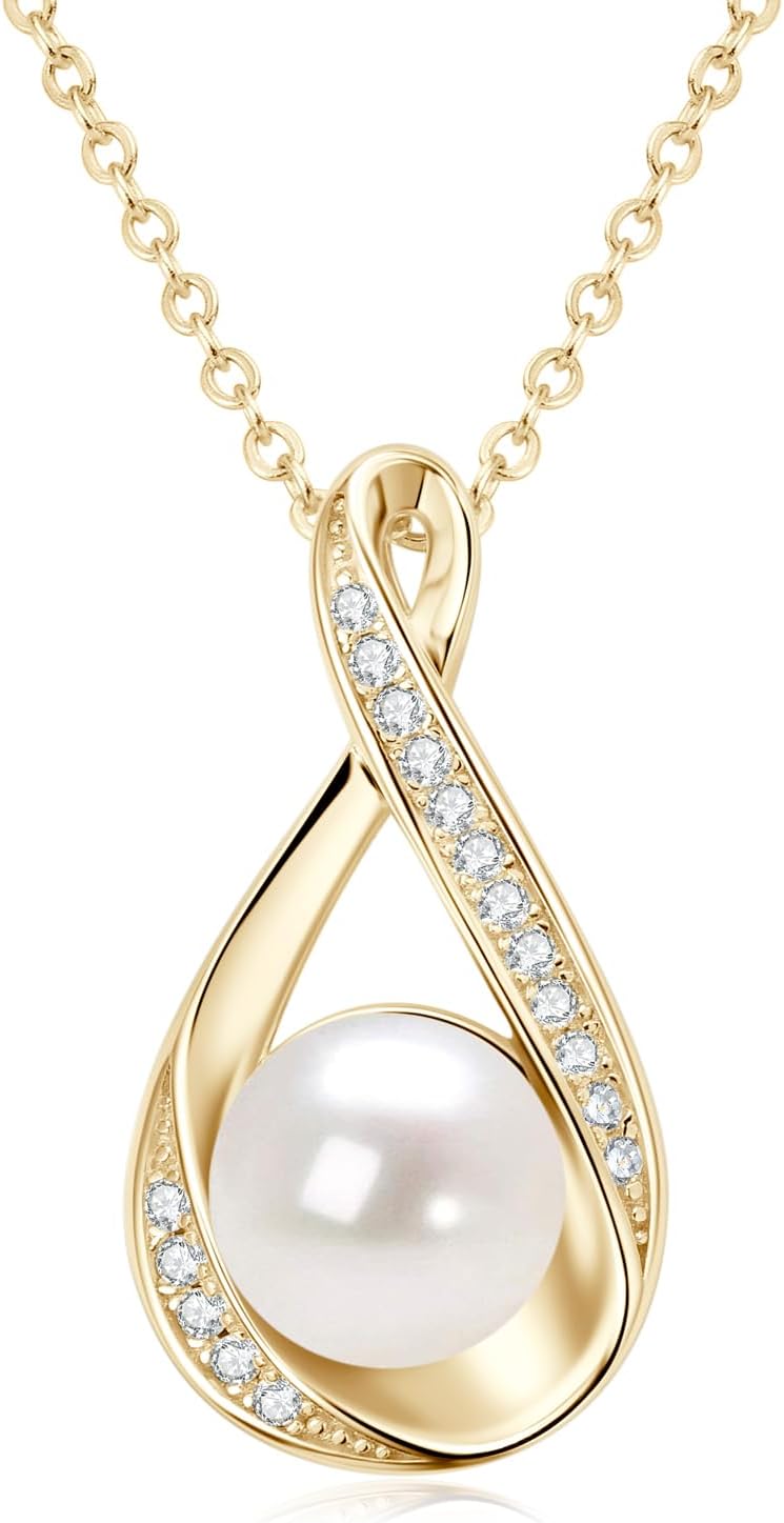 DENGGGUANG Freshwater Pearl Pendant Necklaces for Women, Sterling Silver Infinity Single Pearl Necklace with Shiny Moissanite Wedding Jewelry Gift for Bride Bridesmaid