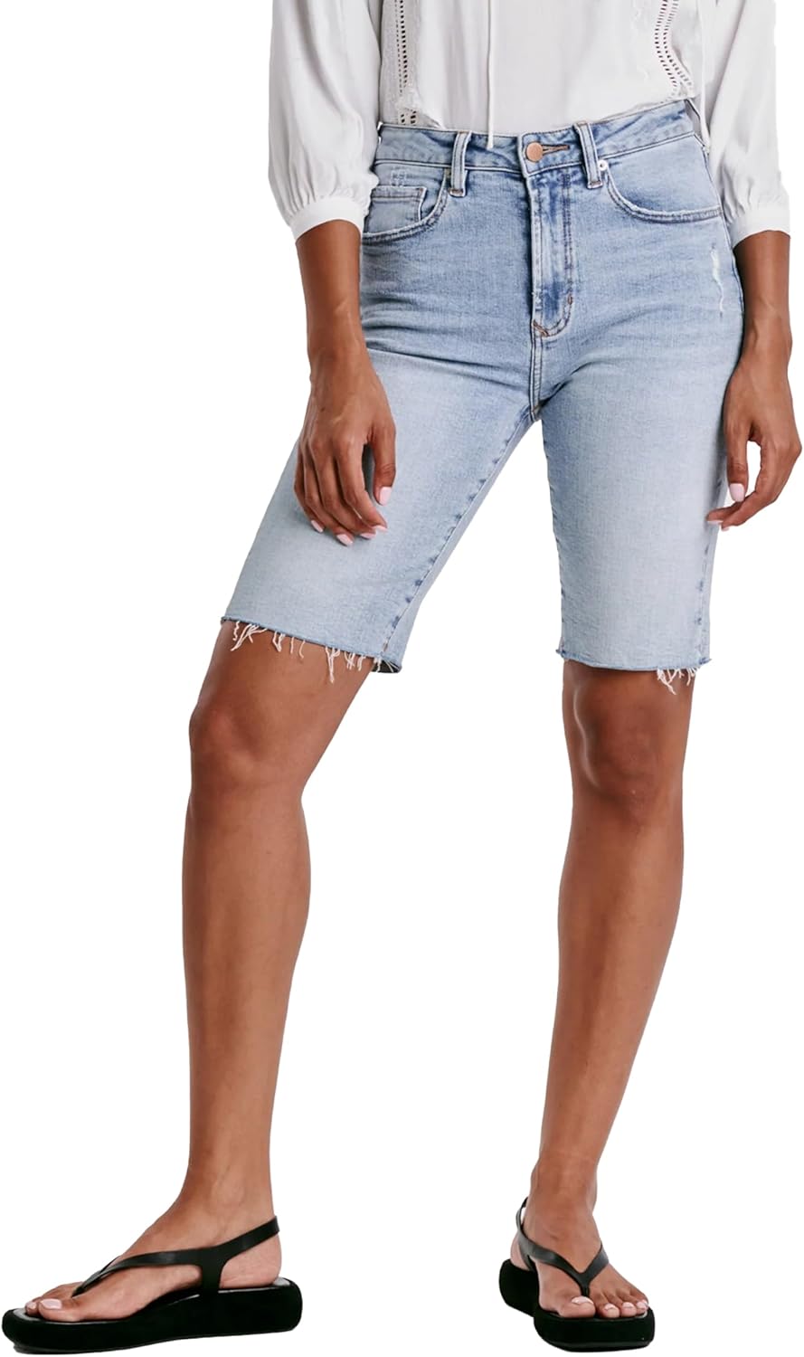 DEAR JOHN Indy Women's Shorts Denim High-Rise Long Inseam Stretch Denim Classic Trendy Dressy Lounge Wear Short