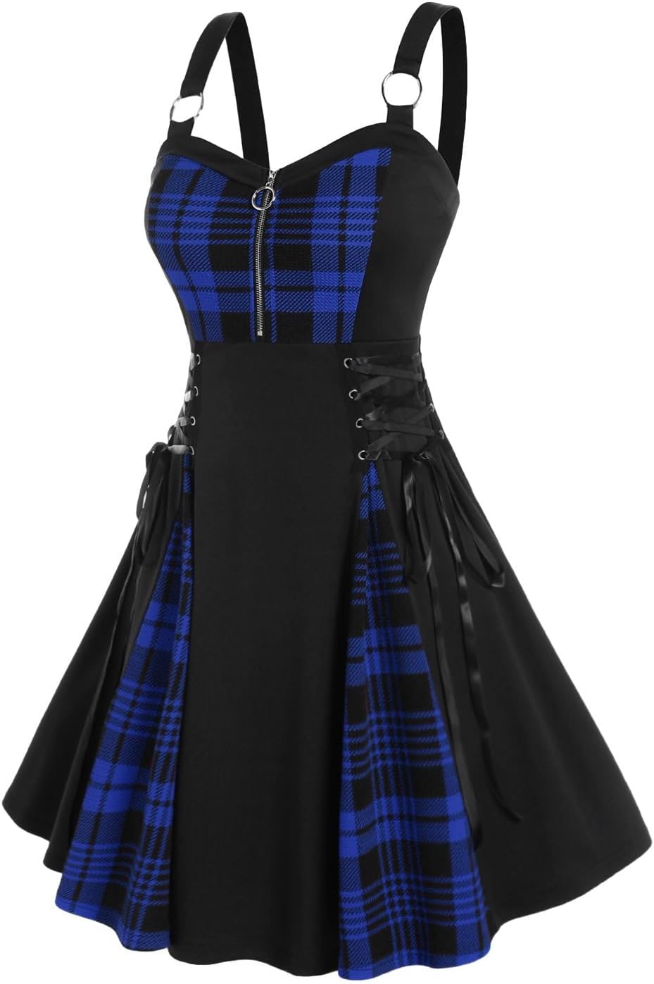 ROSE GAL Gothic Lace Up Plaid Half Zipper Fit and Flare Gothic Dress