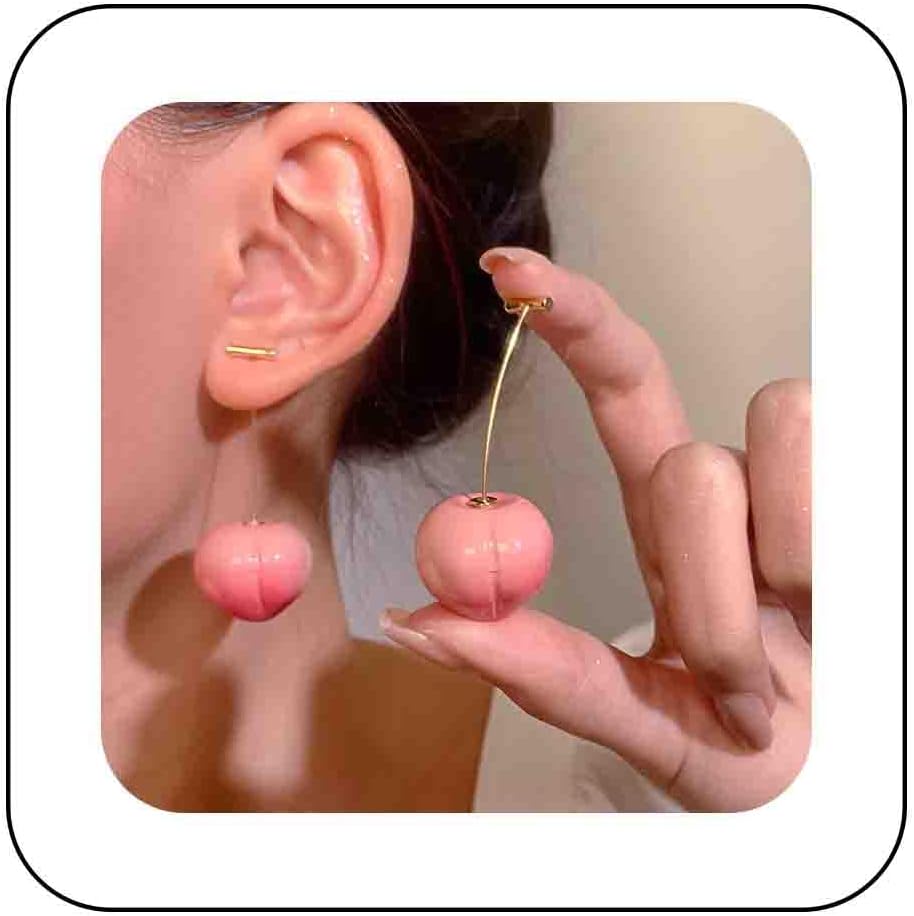 Boho Red Cherry Dangle Earrings Cute Cherry Drop Earrngs Red Fruit Earrings Long Sweet Cherry Earrings 3D Cherry Charm Earrings Spring Earrings Jewelry for Women