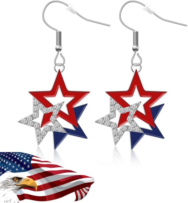 4th of July Earrings, July 4th Independence Day Accessories, Patriotic Earrings for Women, Red White and Blue Metal American Flag Earring, Patriotic American Flag Star Jewelry