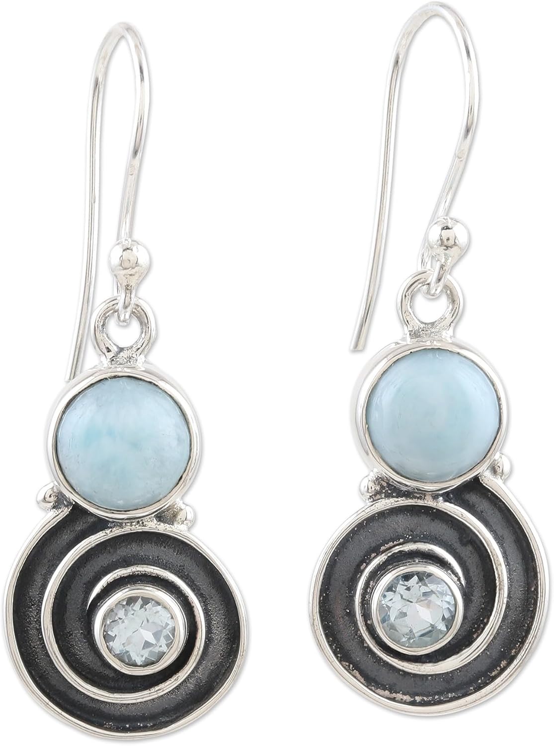 ![NOVICA Artisan Handmade Blue Topaz Larimar Dangle Earrings Sterling Silver India Gemstone Birthstone [1.5 in L x 0.5 in W x 0.2 in D] ' Sky Spiral' - Image 4](https://m.media-amazon.com/images/I/61QucXOk9vL._AC_SL1500_.jpg)