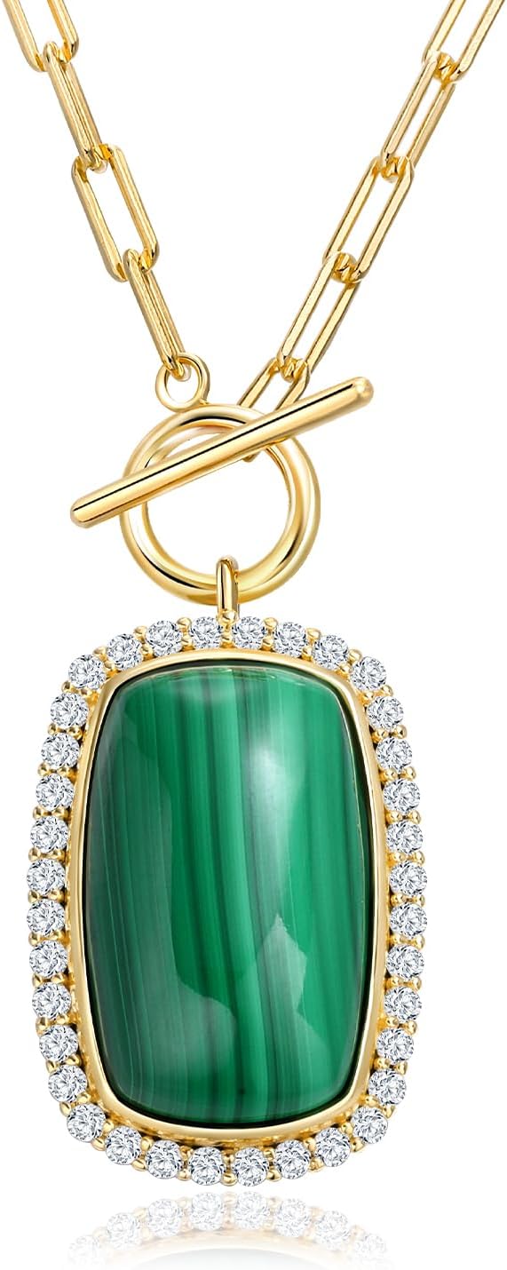 AIBAO Turquoise/Coral/Malachite/Lapis Lazuli Pendant Necklace for Women Sterling Silver Cushion Cut Gemstone Necklace Anniversary Valentines Birthday Jewelry Gift with Box