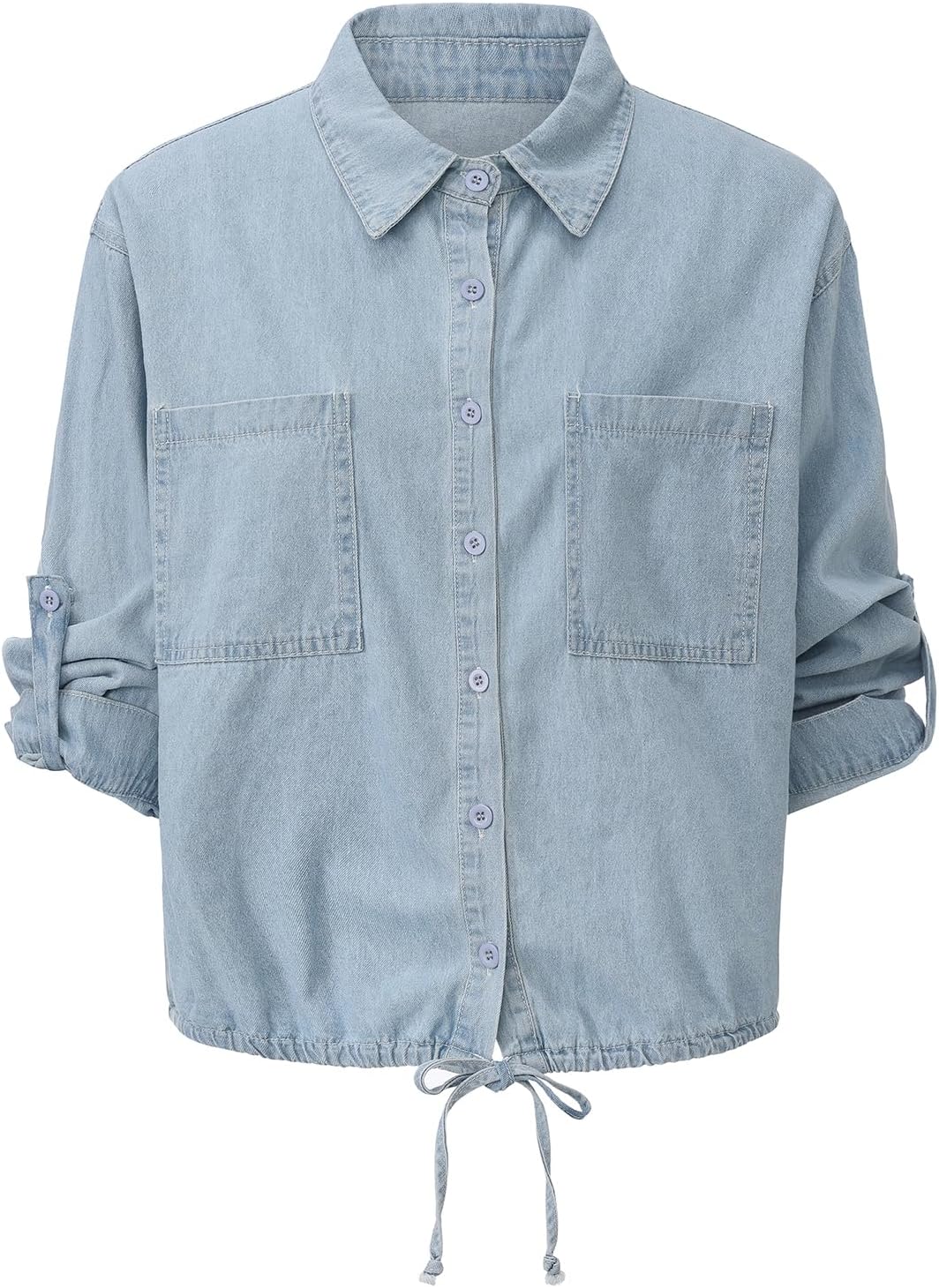 Women's Cropped Denim Shirt Roll Up 3/4 Sleeve Loose Crop Tops Button Front Jean Shacket