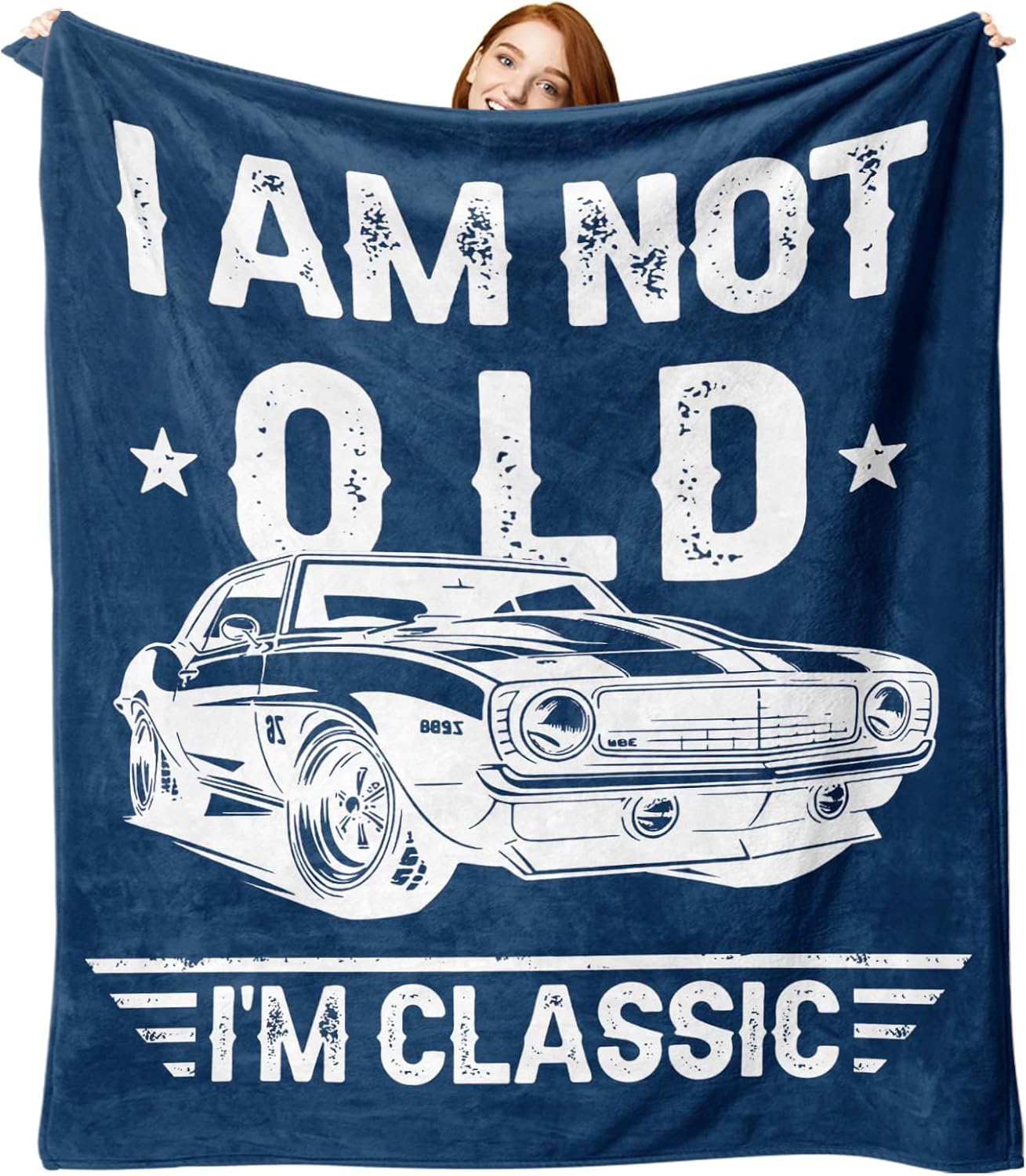 I am Not Old I'm Classic Vintage Car Gifts for Men Flannel Throw Blanket, Funny Fathers Day Birthday Ideas, Soft Blankets Cool Present for Older Husband Dad Grandpa 50" x 60"
