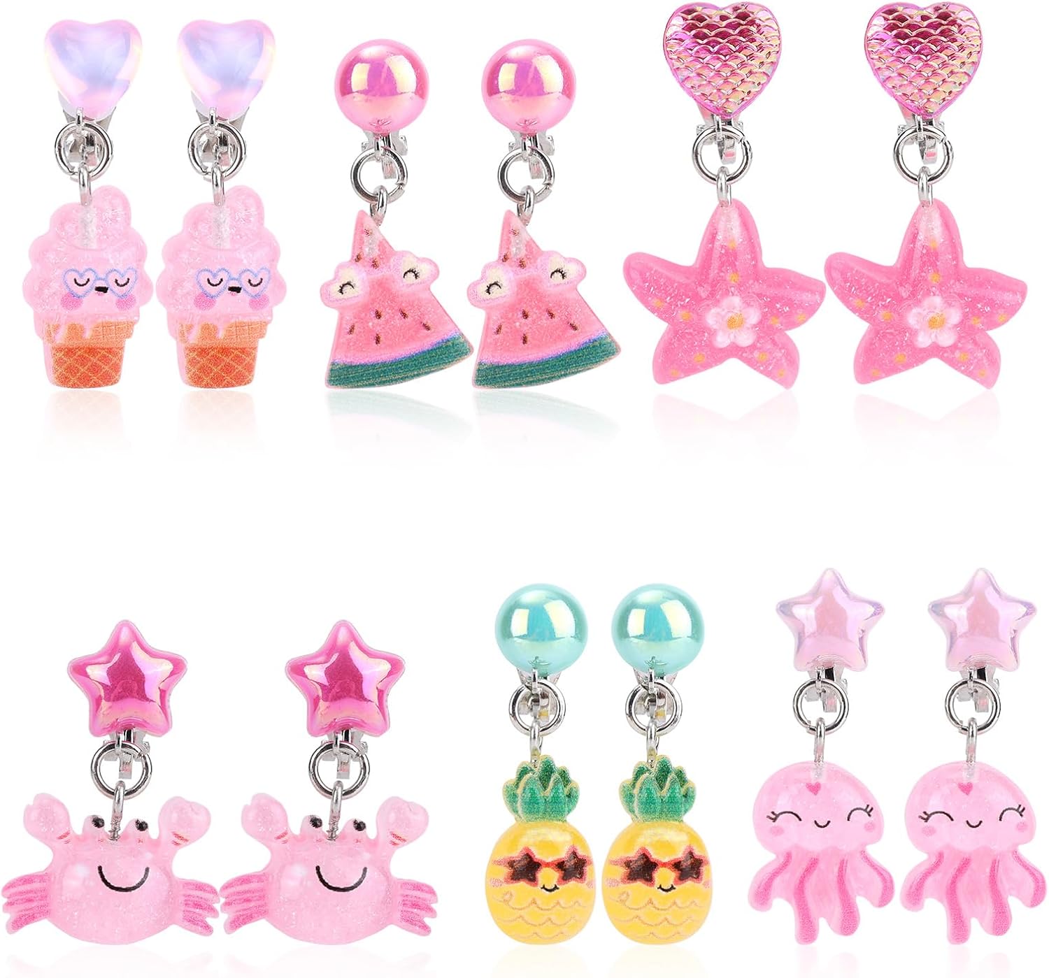 6 Pairs Colorful Clip on Drop Earrings Set, Resin No Pierced Design Kids Child Dangle Earrings Cute Butterfly Ear Clips for Children Toddler Party Daily Wearing Princess Jewelry