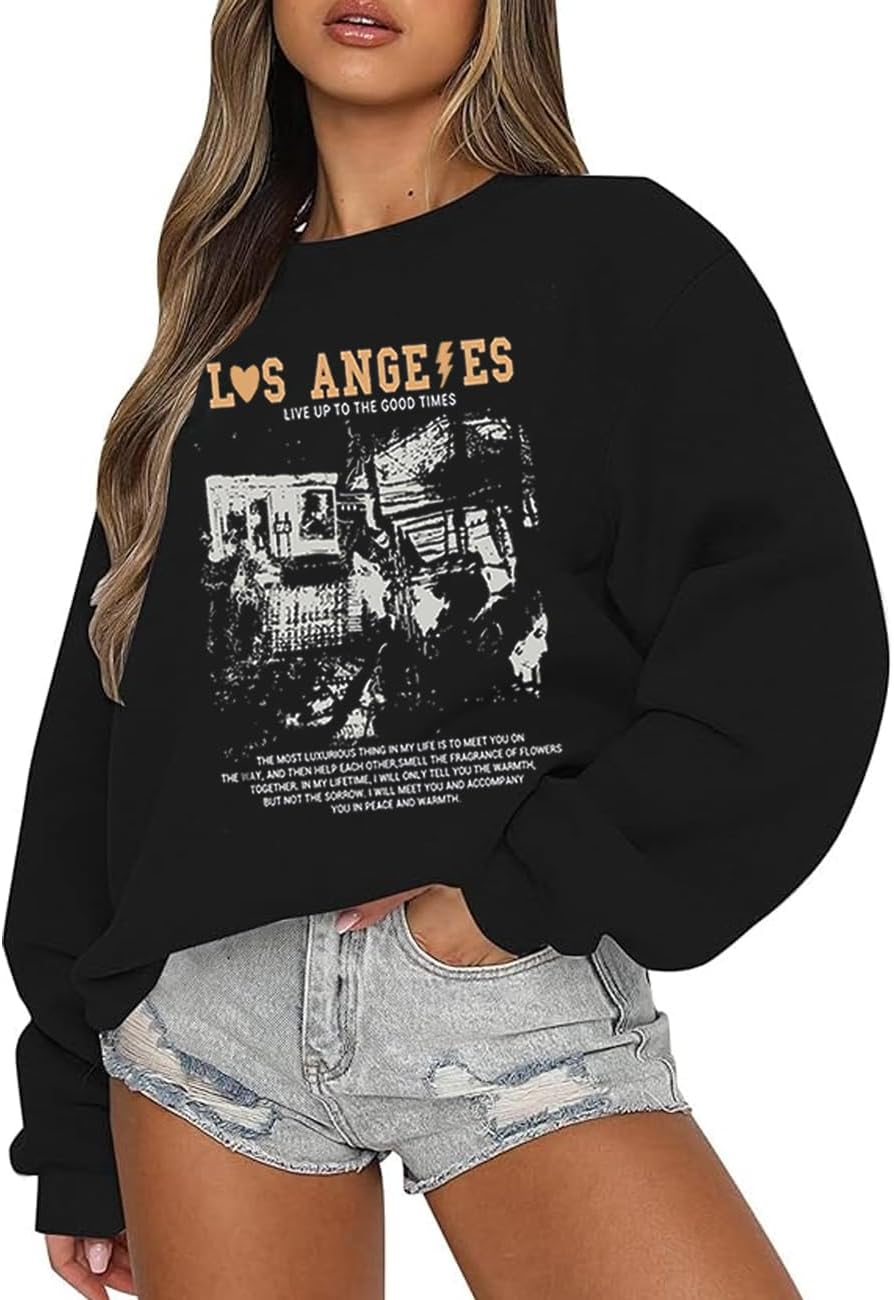 Womens Crewneck Sweatshirts Los Angeles Vintage Graphic Pullover Tops Long Sleeve Casual Letter Print Sweatshirt