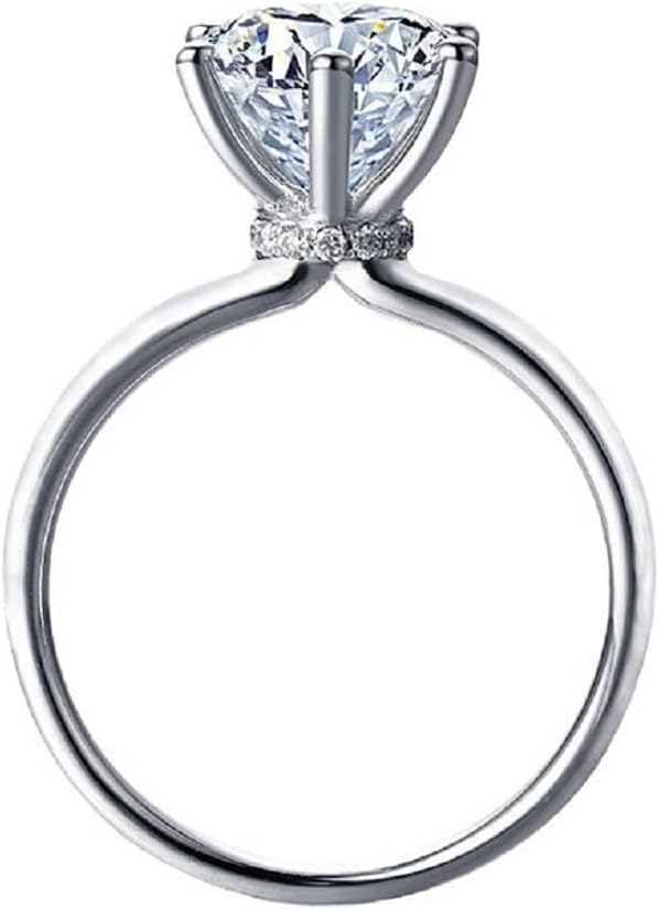 2 Carat Round Brilliant Cubic Zirconia CZ Sterling Silver 925 Wedding Engagement Ring Solitaire Wedding Promise Bands for Women Color VVS1 Clarity Classic Lab Created Diamond Eternal Ring 8#
