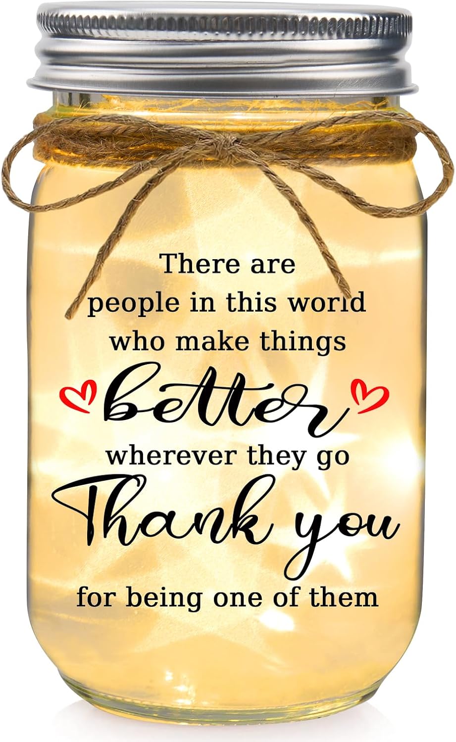 - Thank You Gifts - This mason jar night light fits seamlessly for Birthday Christmas gifts for women coworkers, secret santa gifts, stocking stuffers for women, teacher retirement gifts, nurse appreciation gifts. The heartwarming words and soft glow make it an inspirational gift that resonates deeply — sure to impress and be cherished for years. A Thoughtful Gift to Say “Thank You” to All the Important People: Mom, Friend, Teacher, Coworker, or Boss