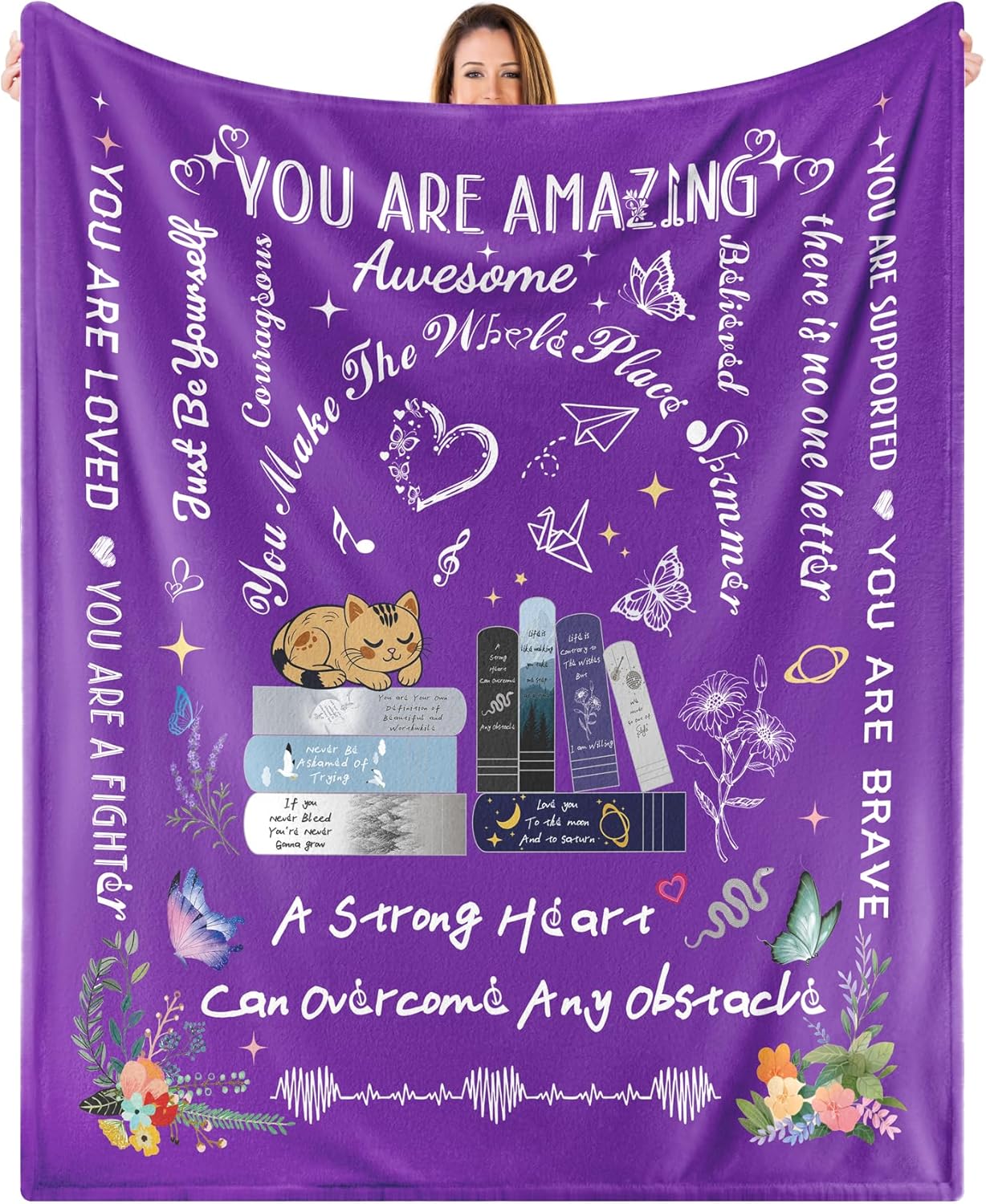 - [Warm and cozy motivational Birthday Gift Blanket]--Made from high-quality flannel material, this cozy purple motivational gifts blanket ensures warmth and comfort, making it the perfect companion for you on cold days. Its soft texture is like a heartfelt embrace and gives a feeling of comfort. Give this blanket to a friend or family member to show your support and care