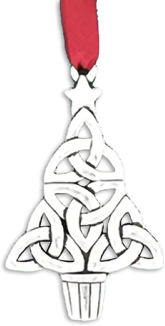 - Handcrafted lead-free pewter ornament featuring an intricate Celtic tree design symbolizing growth, strength, and connection