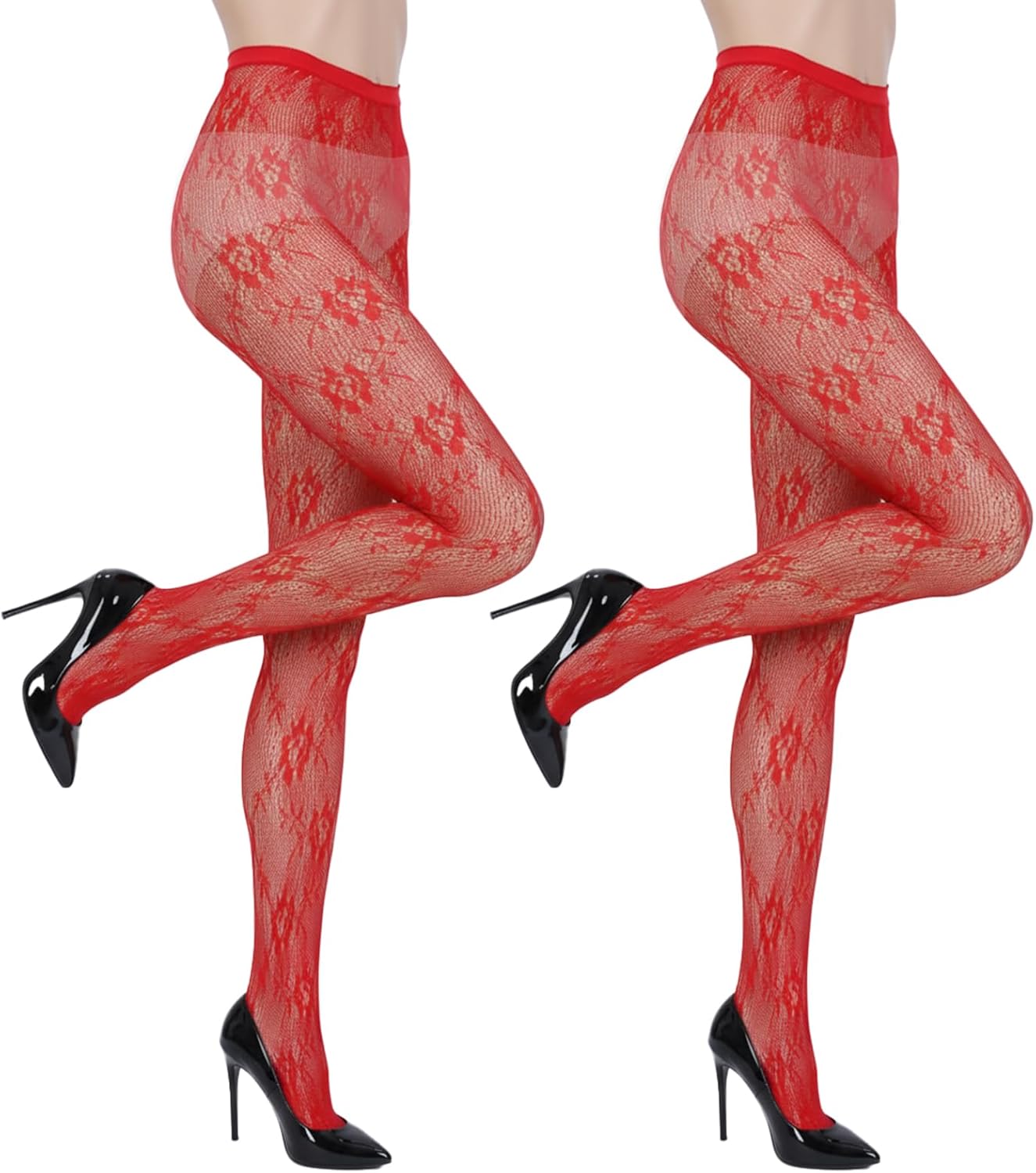 2 Pcs Lace Tights, High Waist Lace Tights for Women, Floral Fishnet Leggings, Stretchable Pantyhose