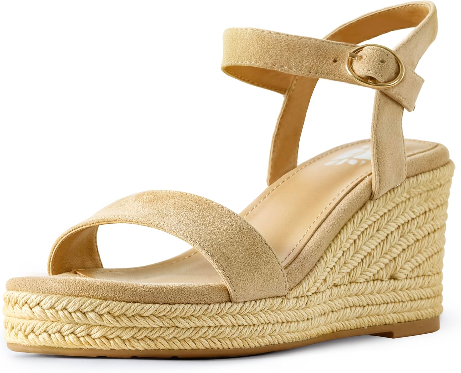 DREAMCIA Espadrilles Wedge Platform Sandals for Women Strappy Ankle Strap Buckle Open Toe Sandals Dressy Shoes Summer