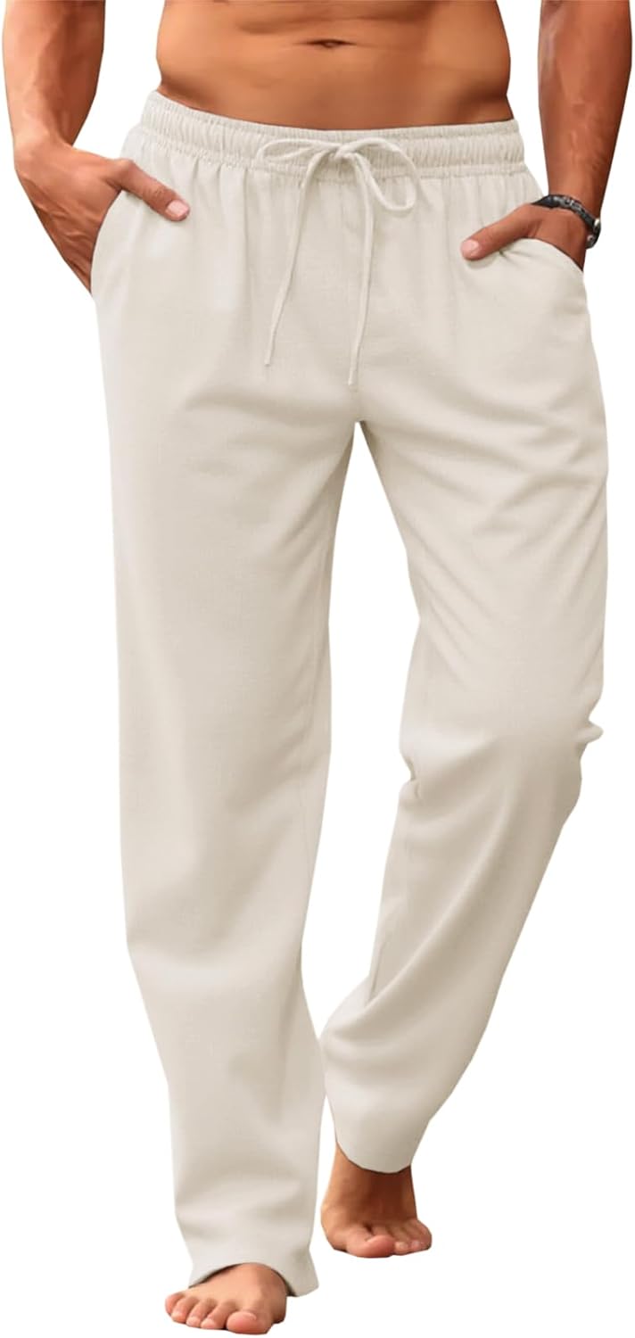 Makkrom Mens Casual Pants Drawstring Elastic Waist Lightweight Linen Pants Loose Fit Summer Beach Yoga Trousers