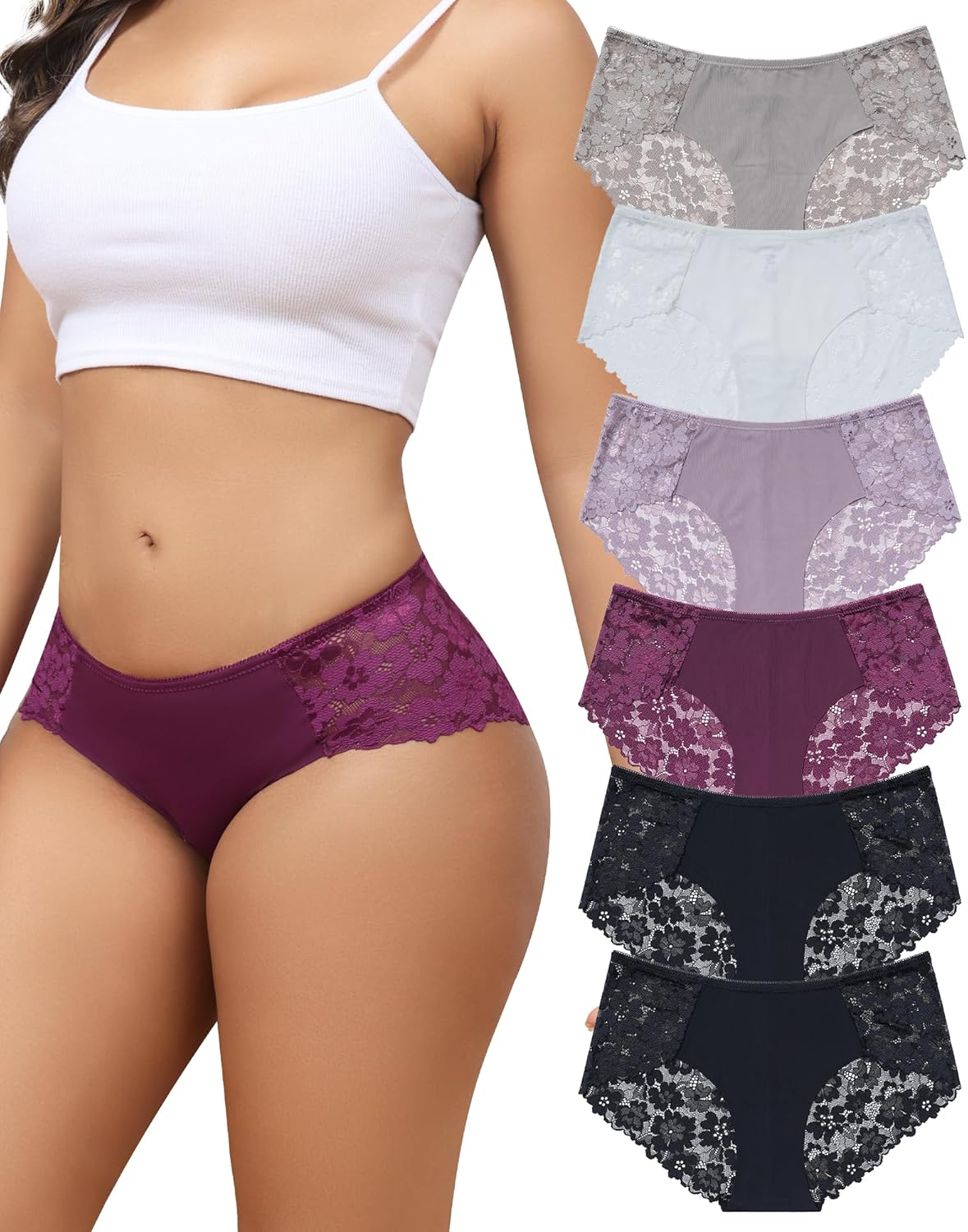 Aijolen Lace Bikini Panties Womens Cheeky Seamless Underwear Ladies No Show Hipster Underpants 6 Pack S-XXL