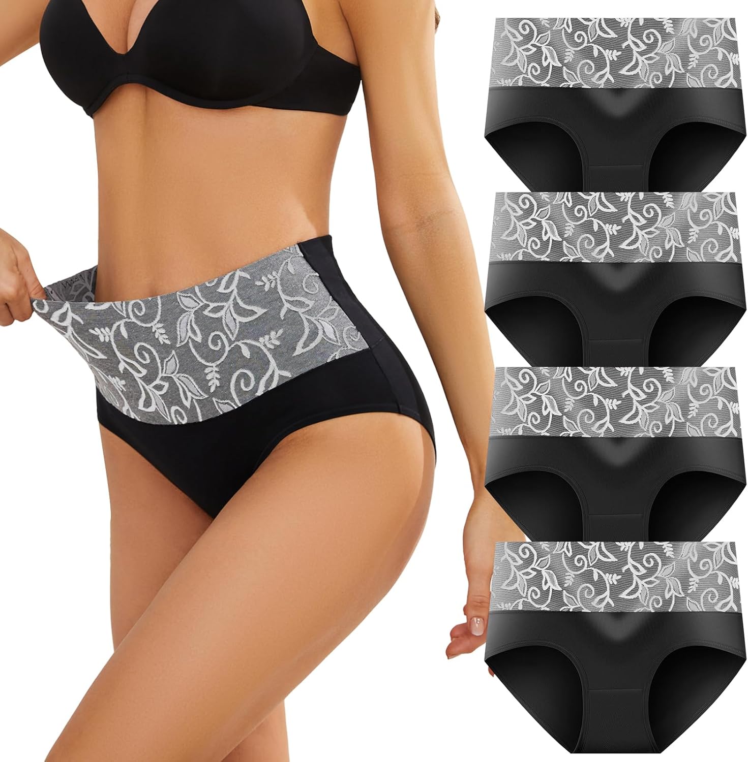 Womens Underwear Cotton Tummy Control High Waisted Underwear Soft Breathable Full Coverage Panties Multipack