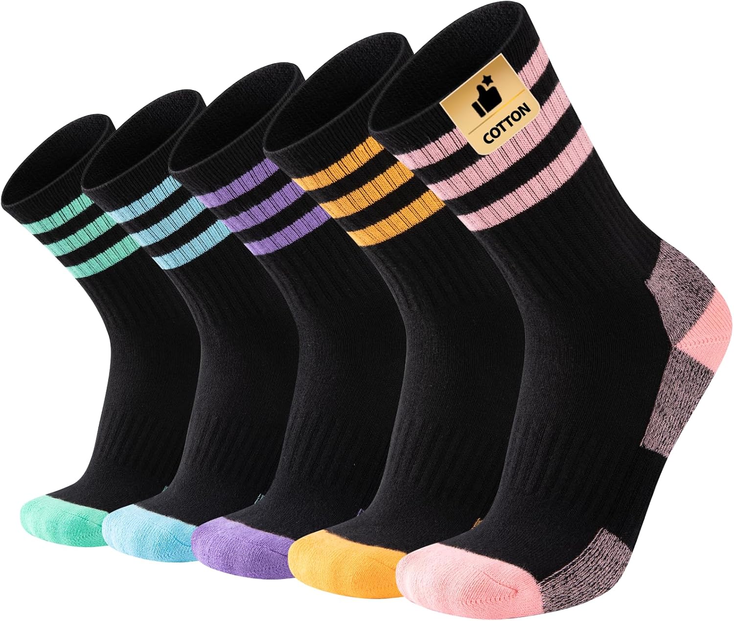 COOPLUS Womens Athletic Crew Socks Cushioned Cotton Wicking Outdoor Recreation Sports Calf Socks 5 Pairs