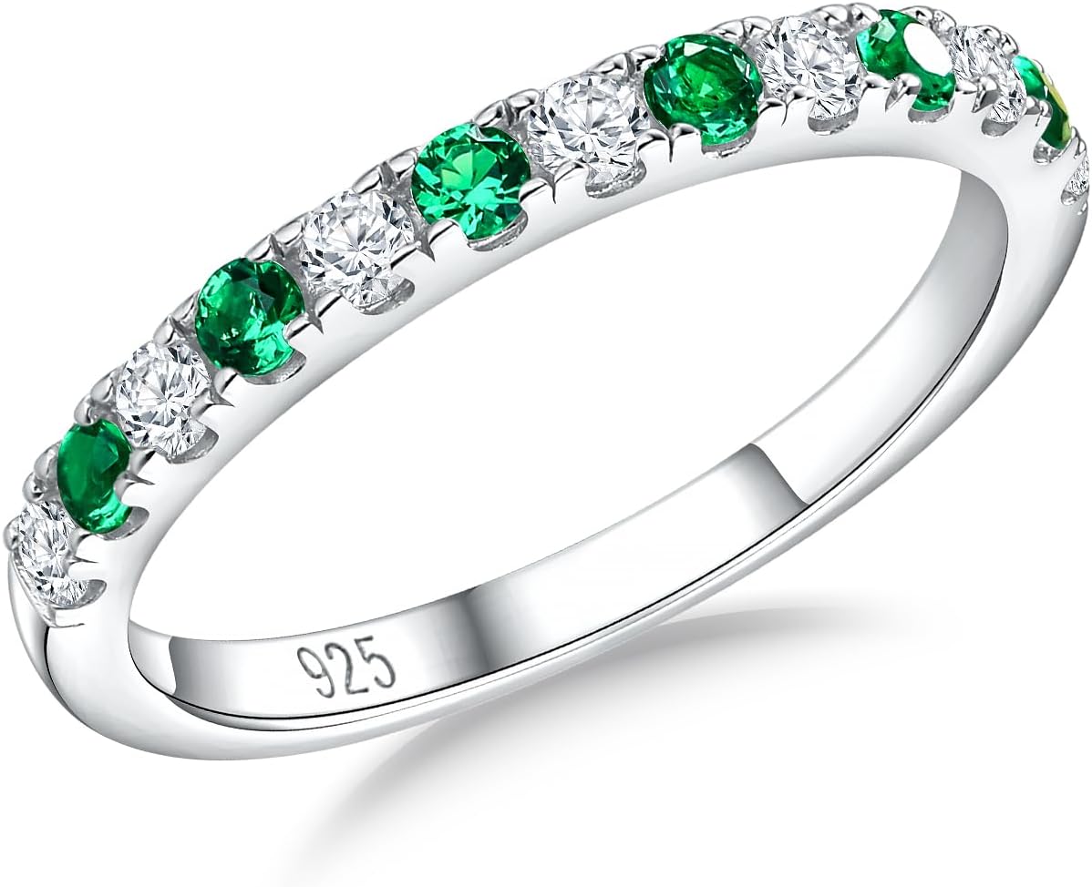 Birthstone Rings Eternity Band 925 Sterling Silver/Yellow Gold-Plated Created Gemstone Stackable Wedding Band 2.7mm Thin Half Eternity Rings for Women Size 6 to 10
