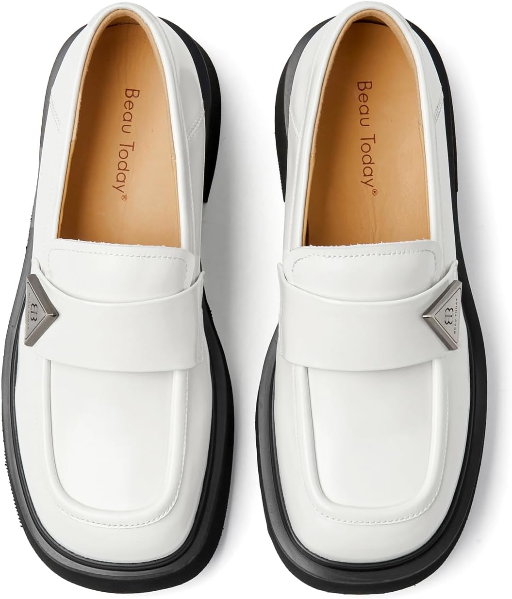 BEAU TODAY Chunky Loafers Women,Patent Full Grain Leather Loafers for Women,Comfortable Slip-on Fashion Platform Shoes, Non Slip Business Casual Work Office Square Toe Dress Shoes