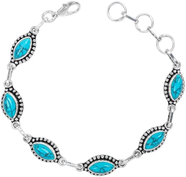 Gemstone Silver Overlay Link Bracelet For Women Natural Gemstone Link Chain Bracelet, Handmade Adjustable Link Bracelet For Women Girls Christmas Gifts