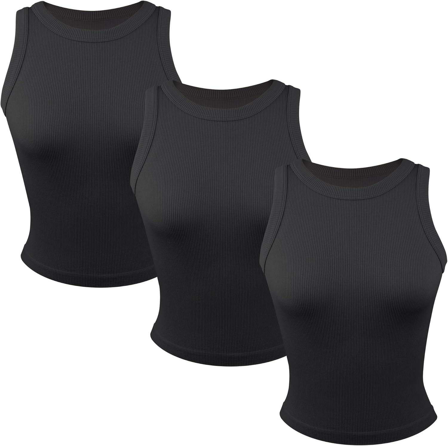 Common Stitch 3 Pack Stretch Tank Tops for Women, Ribbed Crew Neck Womens Workout Yoga Tops (Available in Plus)