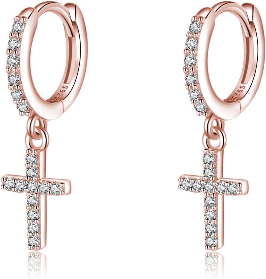 SLUYNZ Solid 925 Sterling Silver Cross Hoop Earrings for Women Teens Small CZ Hoop Earrings Huggie Drop