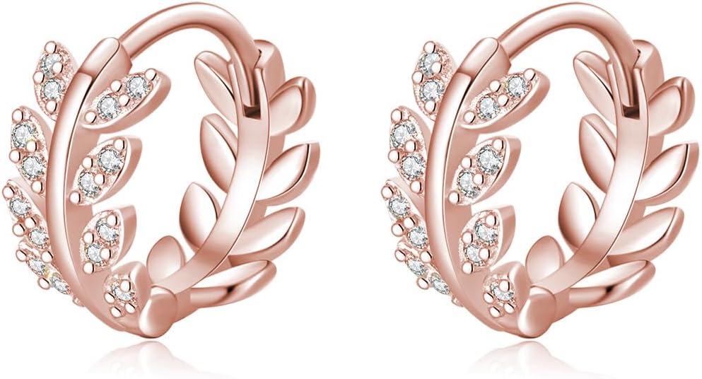 SLUYNZ Sterling Silver CZ Leaf Hoop Earrings for Women Teens Dainty Olive Leaf Hoop Earrings Huggie