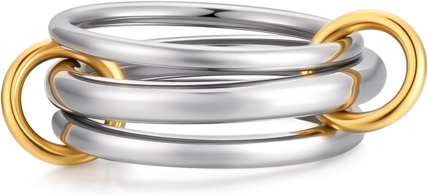 HERSIN Stackable Rings for Women Trendy, Dainty 14K Gold Plated Ring Chunky Rings Multi Silver Gold Ring Mixed Metal Stacking Rings Set Gold Jewelry for Women Gifts