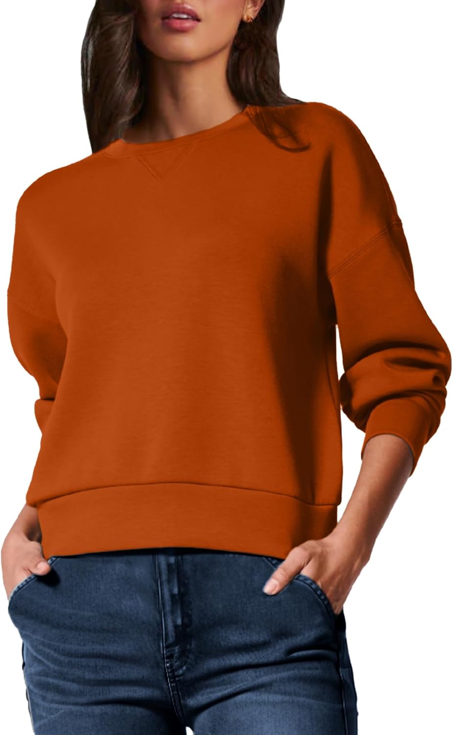 Glamaker Women's Crewneck Cropped Sweatshirt Pullover Stripe Air Essentials Basic Long Sleeve Shirts Casual Loose Fit Outfits