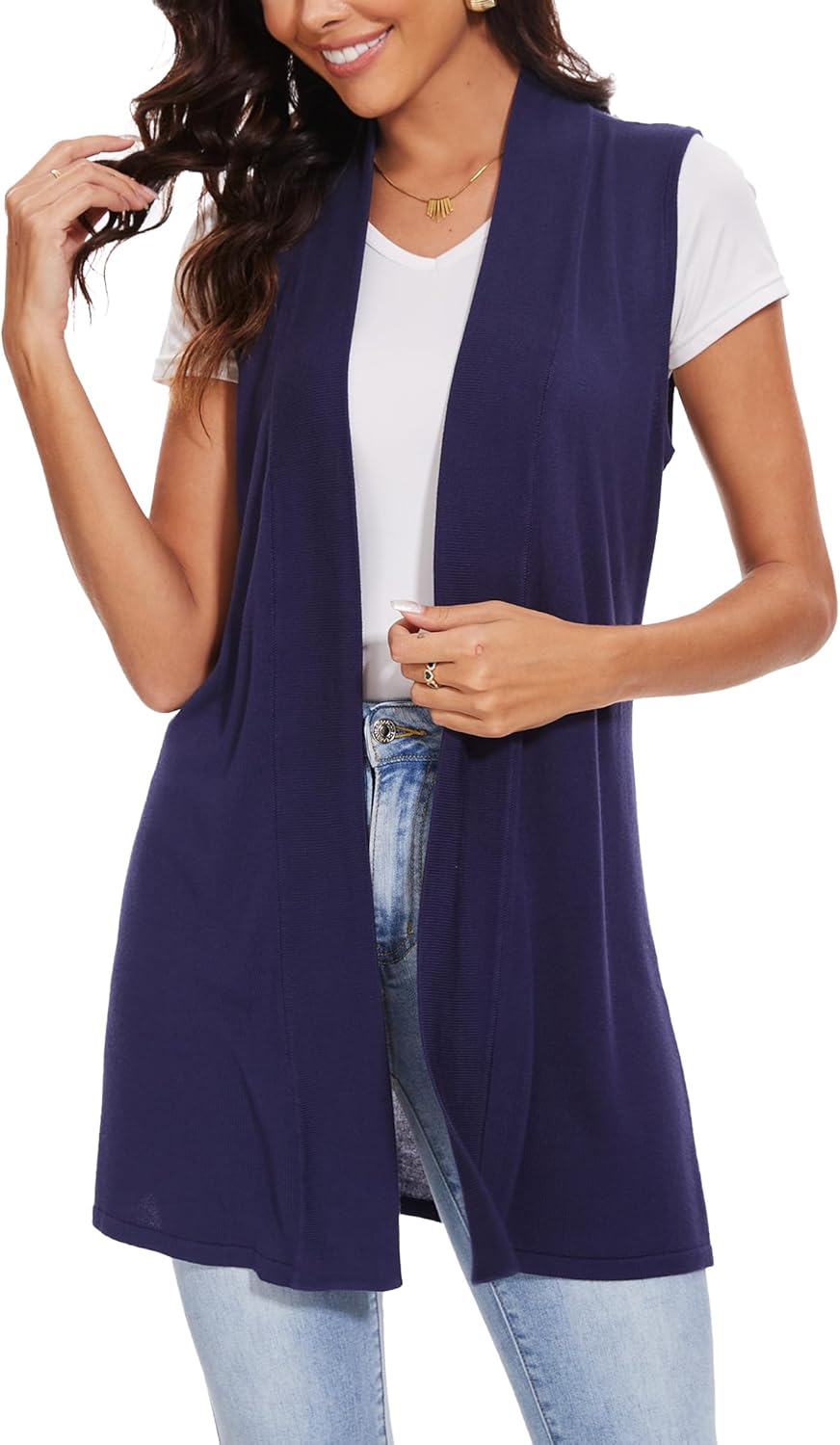 Spicy Sandia Women's Long Knit Cardigan Vest Sleeveless Open Front Casual Sweater Duster