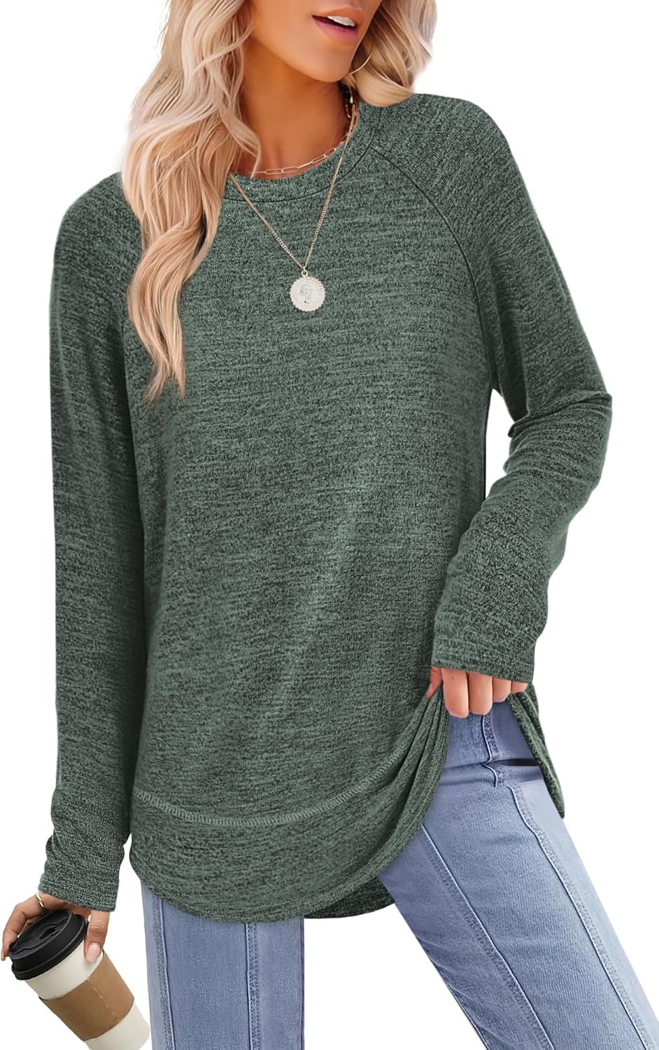 Sampeel Long Sleeve Shirts for Women Tunic Tops Loose Fit Dressy Crew Neck Pullover Basic Sweaters for Women 2025