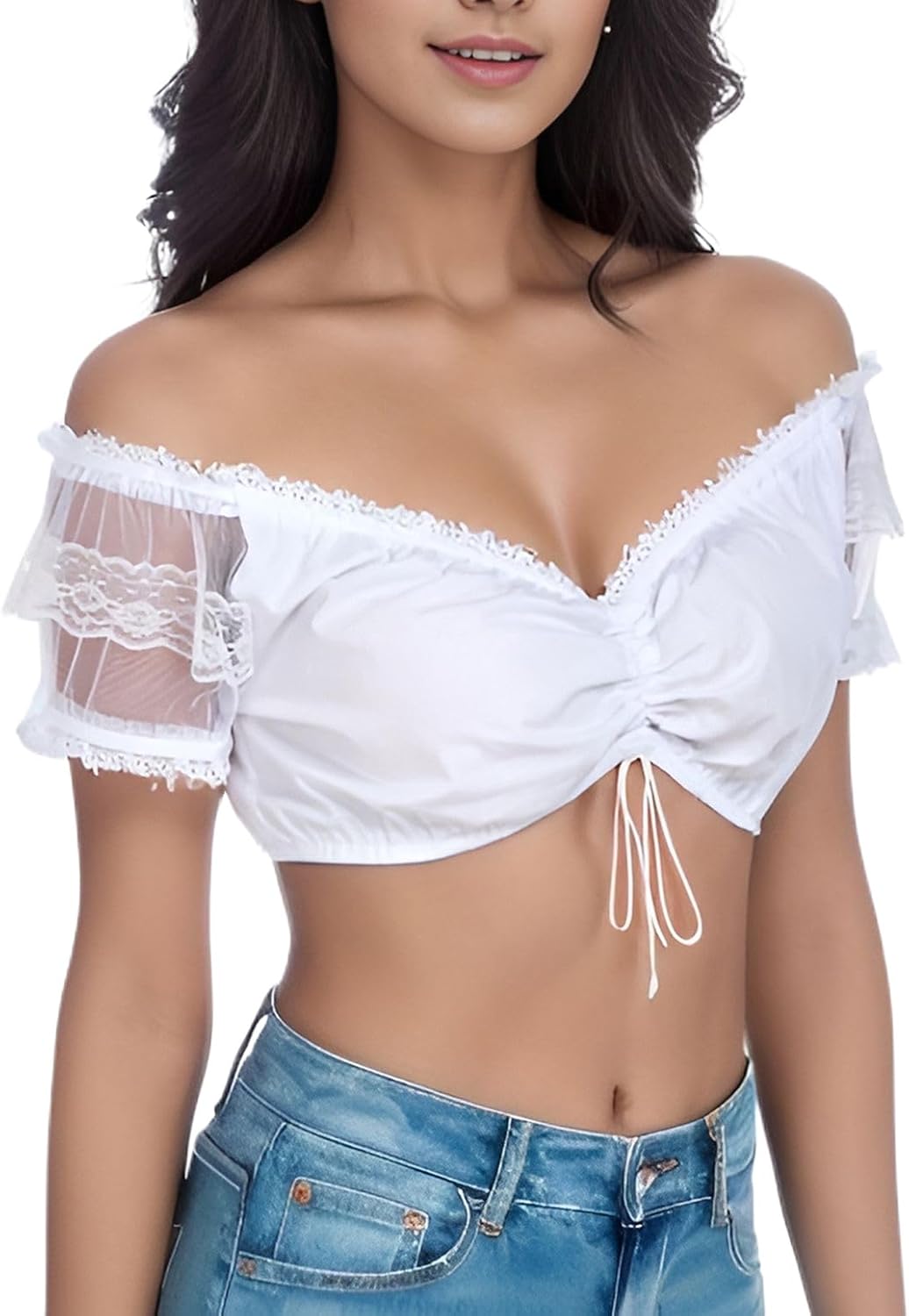 Women's Dirndl Cotton Blouse Short Sleeve German Crop Top Soft Oktoberfest Shirt Summer Bavarian Shirt