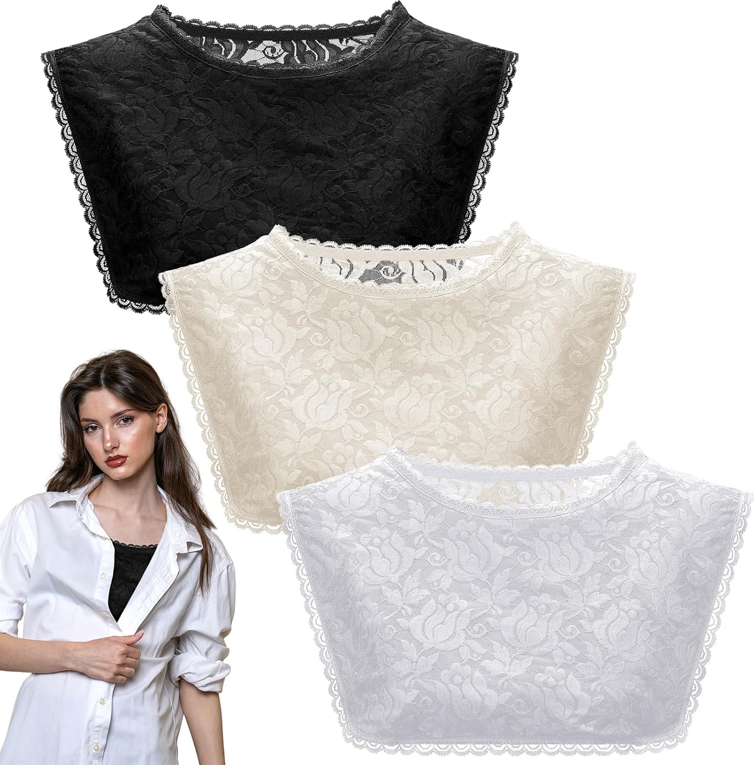 3 Pcs Lace Cleavage Cover up for Low Neckline Fake Collars for Women Modesty Inserts for Low Cut Dresses Crew Collar