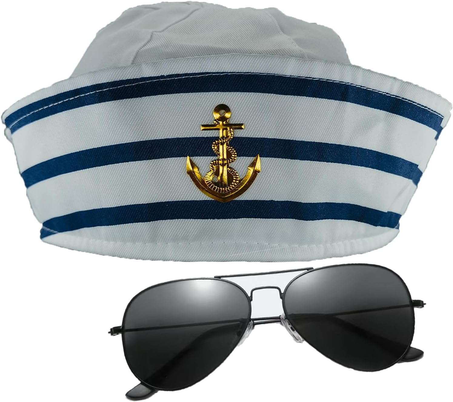 Sailor Hat Captain Navy Hat Adjustable Width Blue with White Sail Hats for Men Women Halloween Dressing Up Party Navy Costume Accessory