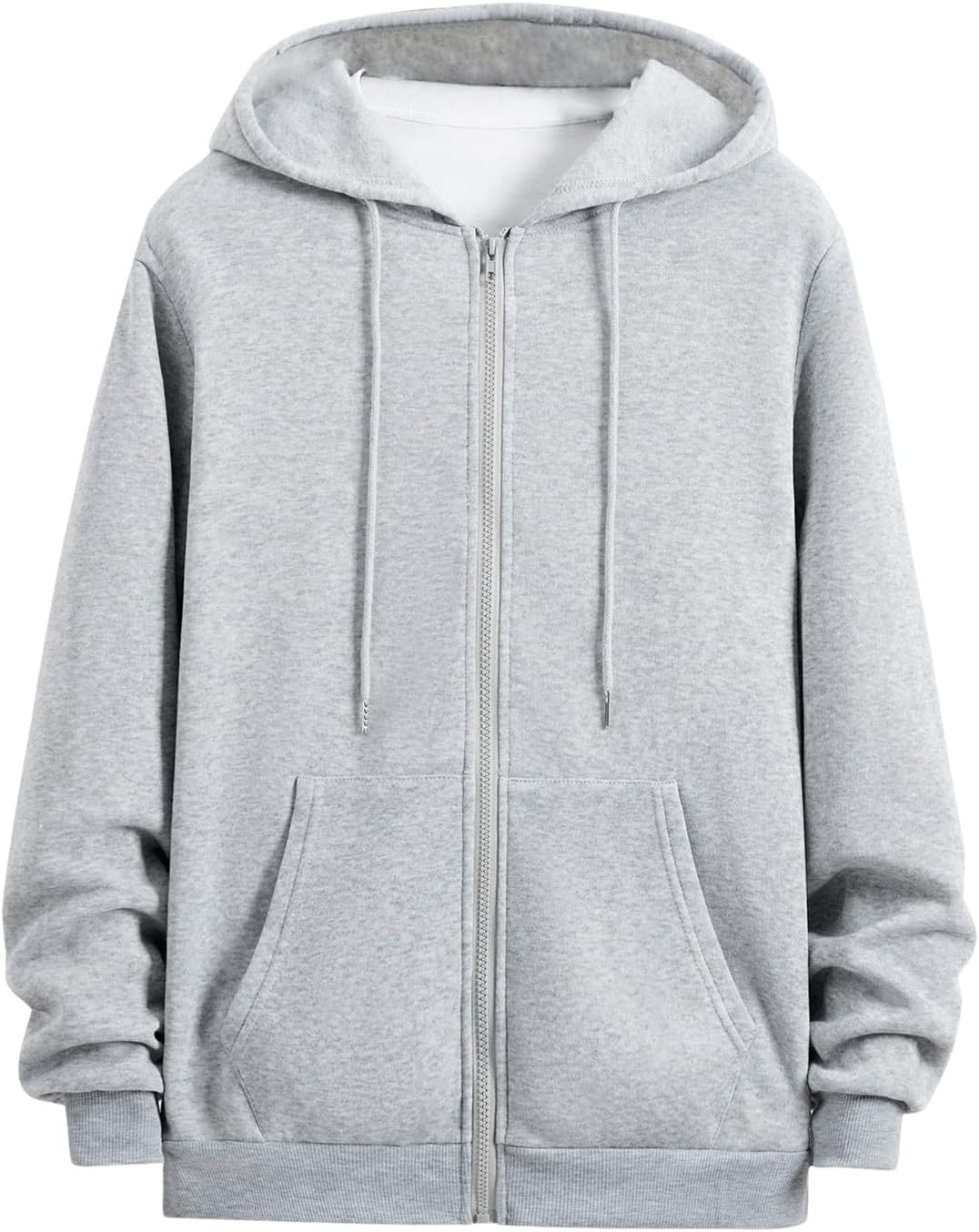 SHENHE Men's Drawstring Zip Up Hoodie Casual Drop Shoulder Hooded Sweatshirt with Pocket