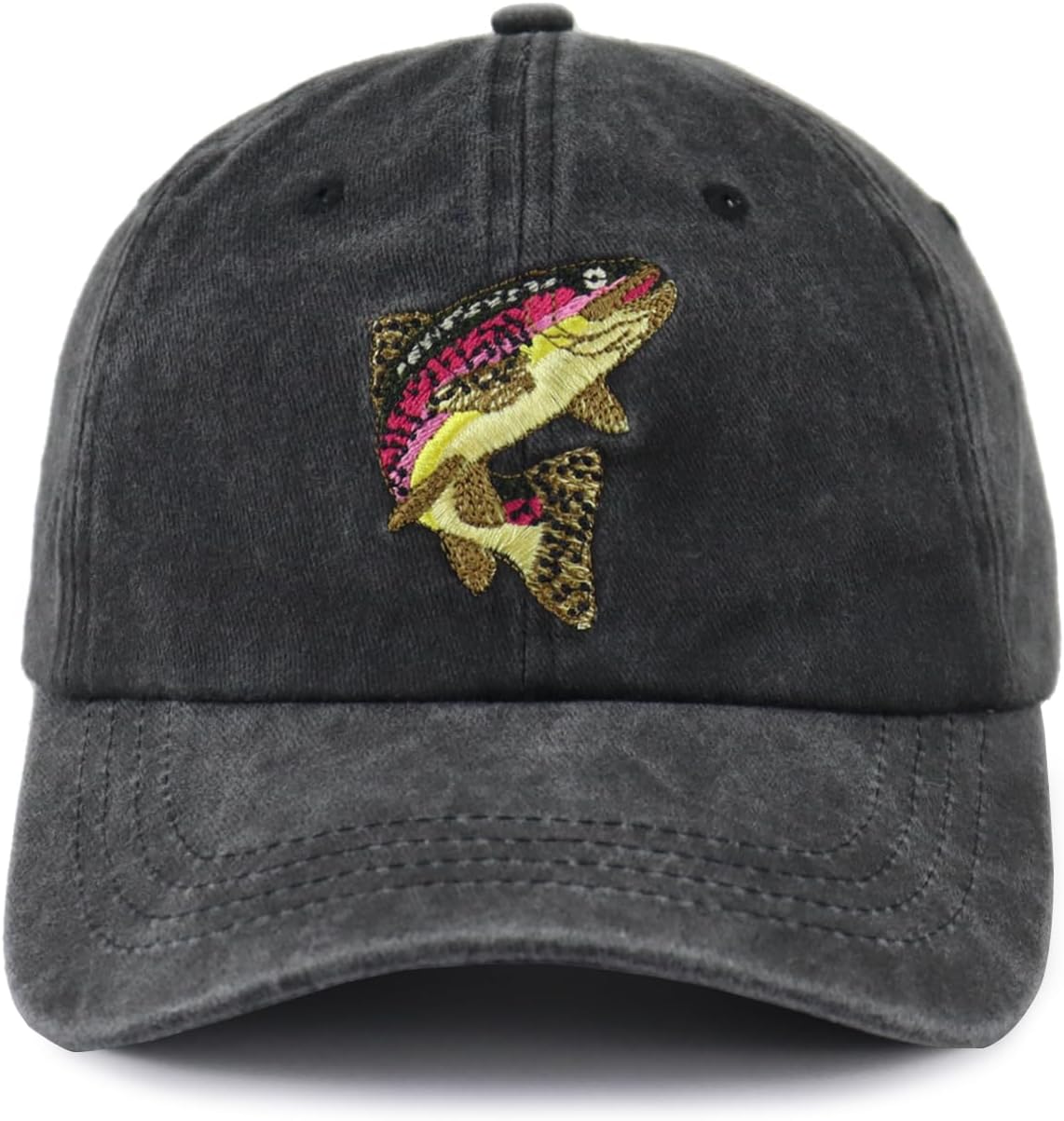 Fishing Hat for Men Women, Funny Embroidered Adjustable Cotton Fish Baseball Cap