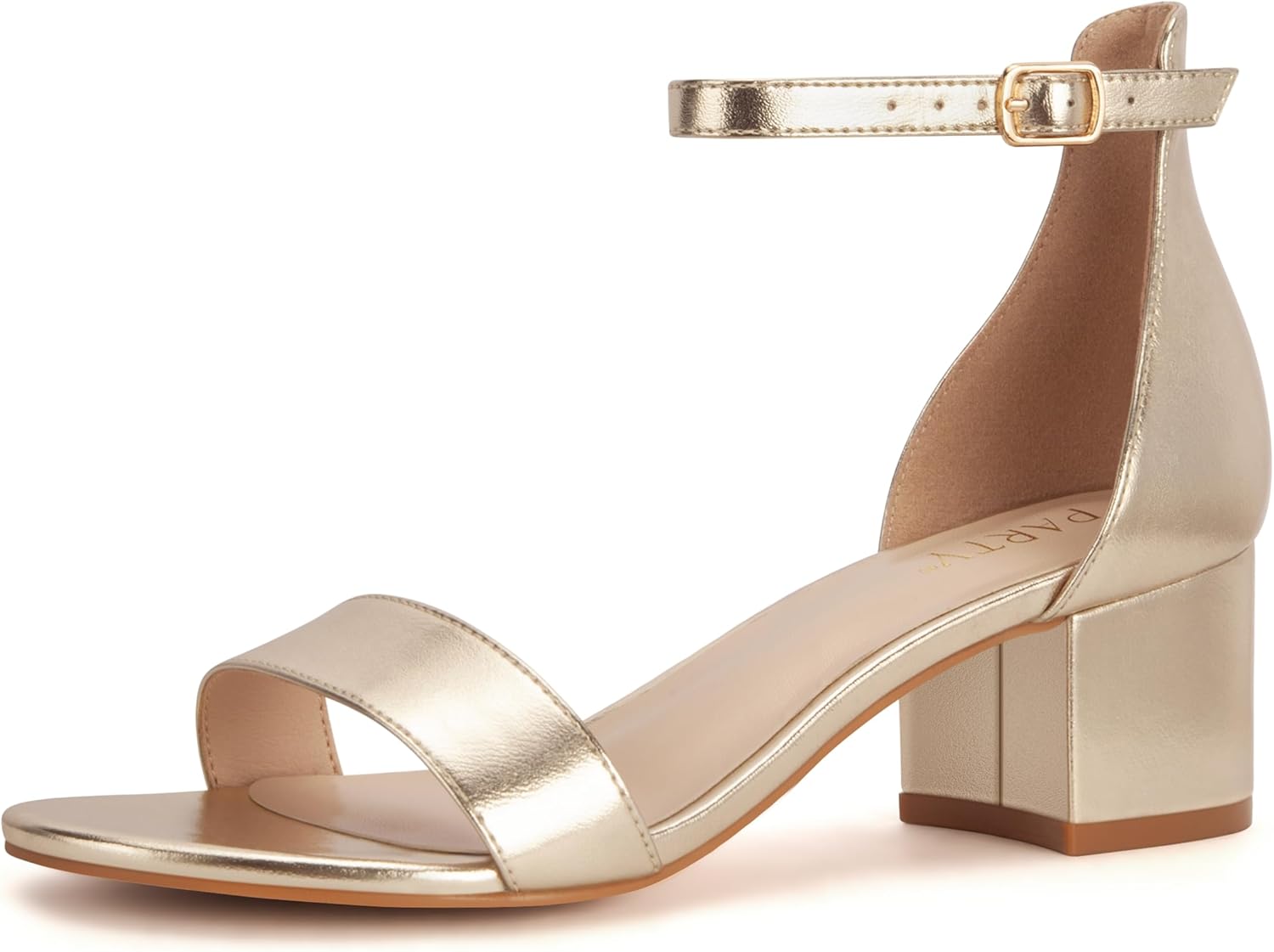 PARTY Women's Open Toe Ankle Strap Low Block Chunky Heels Sandals