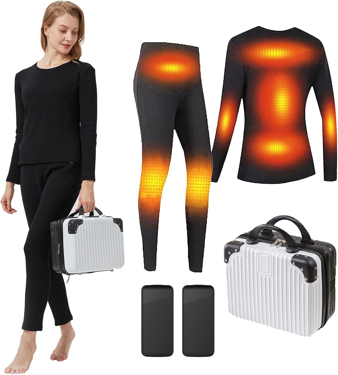 Women's Thermal Underwear Set, USB Electric Thermal Heated Long Johns Set with Power Bank for Outdoor Sports Skiing