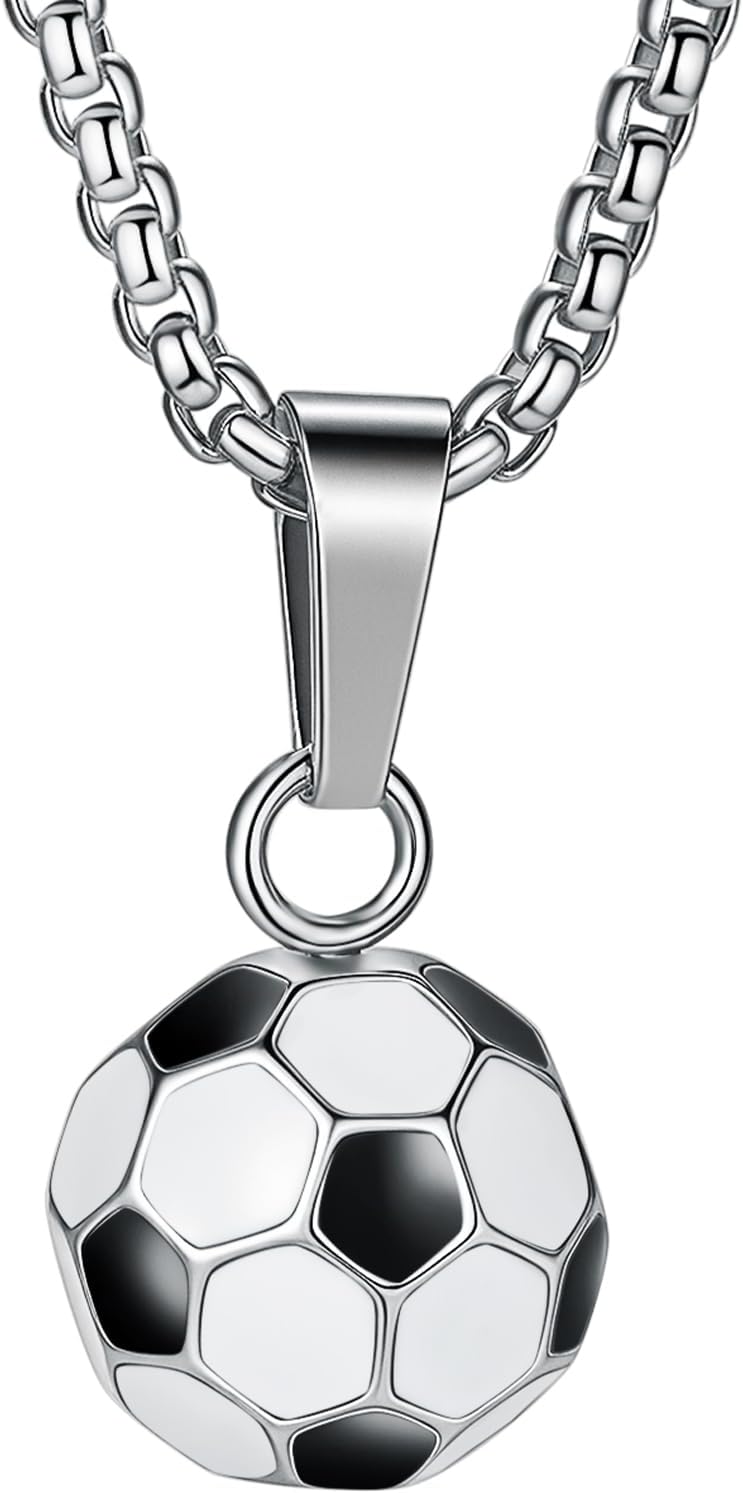 Soccer Necklace for Men Women – 316L Stainless Steel 3D Football Pendant with 24'' Chain, Sports Fan Jewelry Gift for Athletes, Boyfriend, Birthday, Christmas