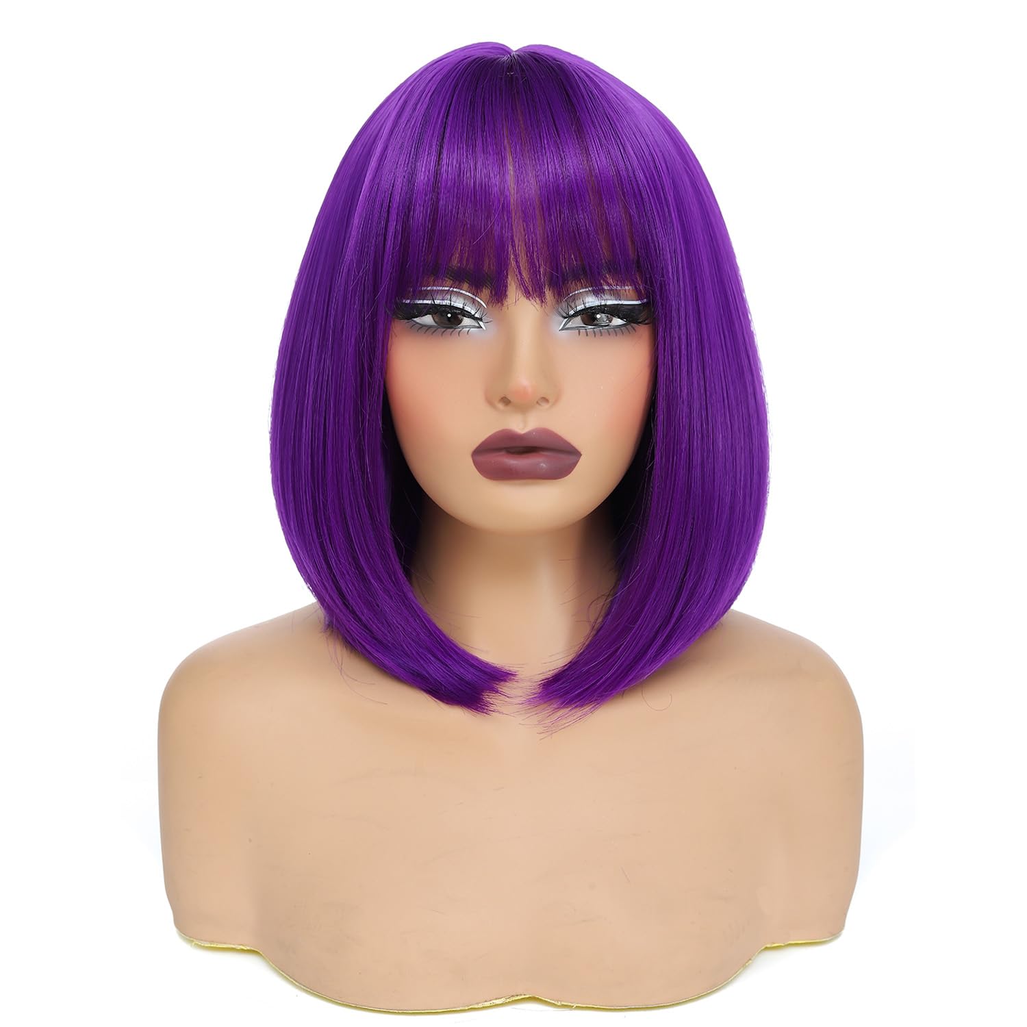 - Premium Material: Purple Bob Wig made of heat resistant synthetic fiber. "Human-Hair-Like" touching, natural density,soft,no smell,tangle-free, minimal shedding.