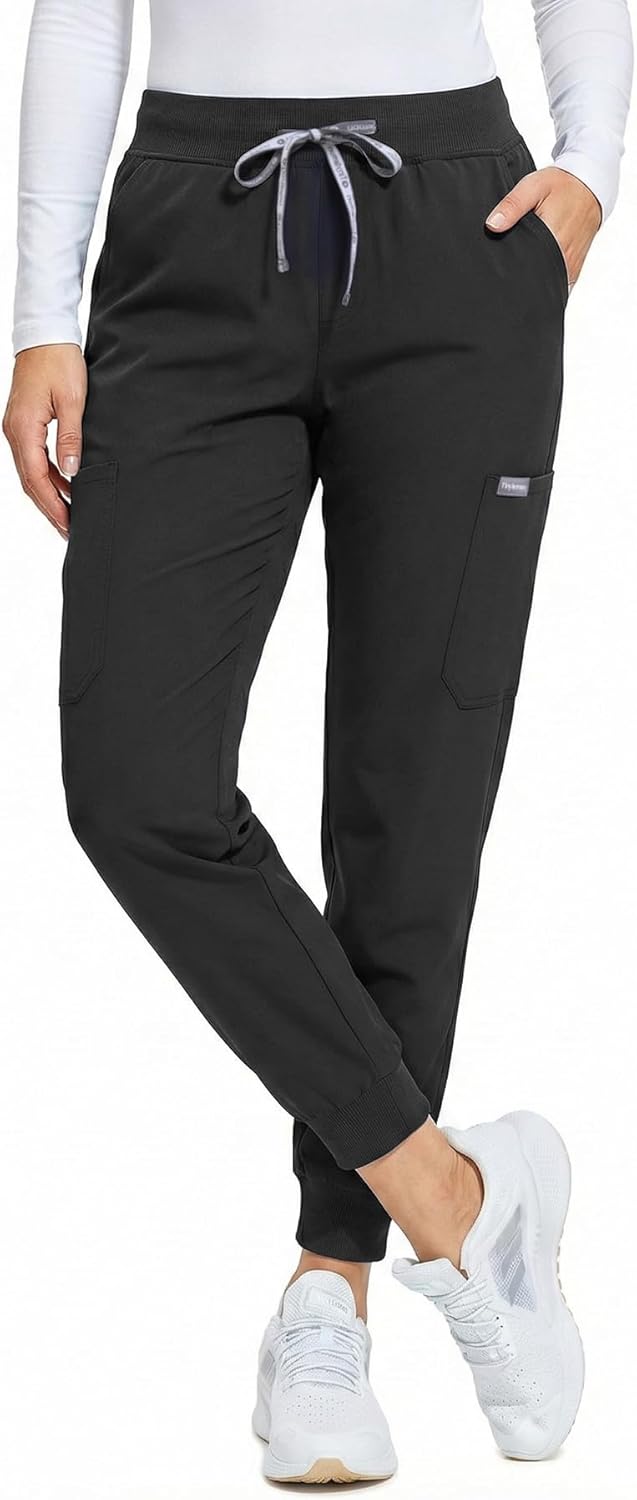 TINYLEMON Scrub Pants for Women - Slim Fit Soft Four Way Stretch Anti-Wrinkle Yoga Waistband Women Joggers 8 Pockets