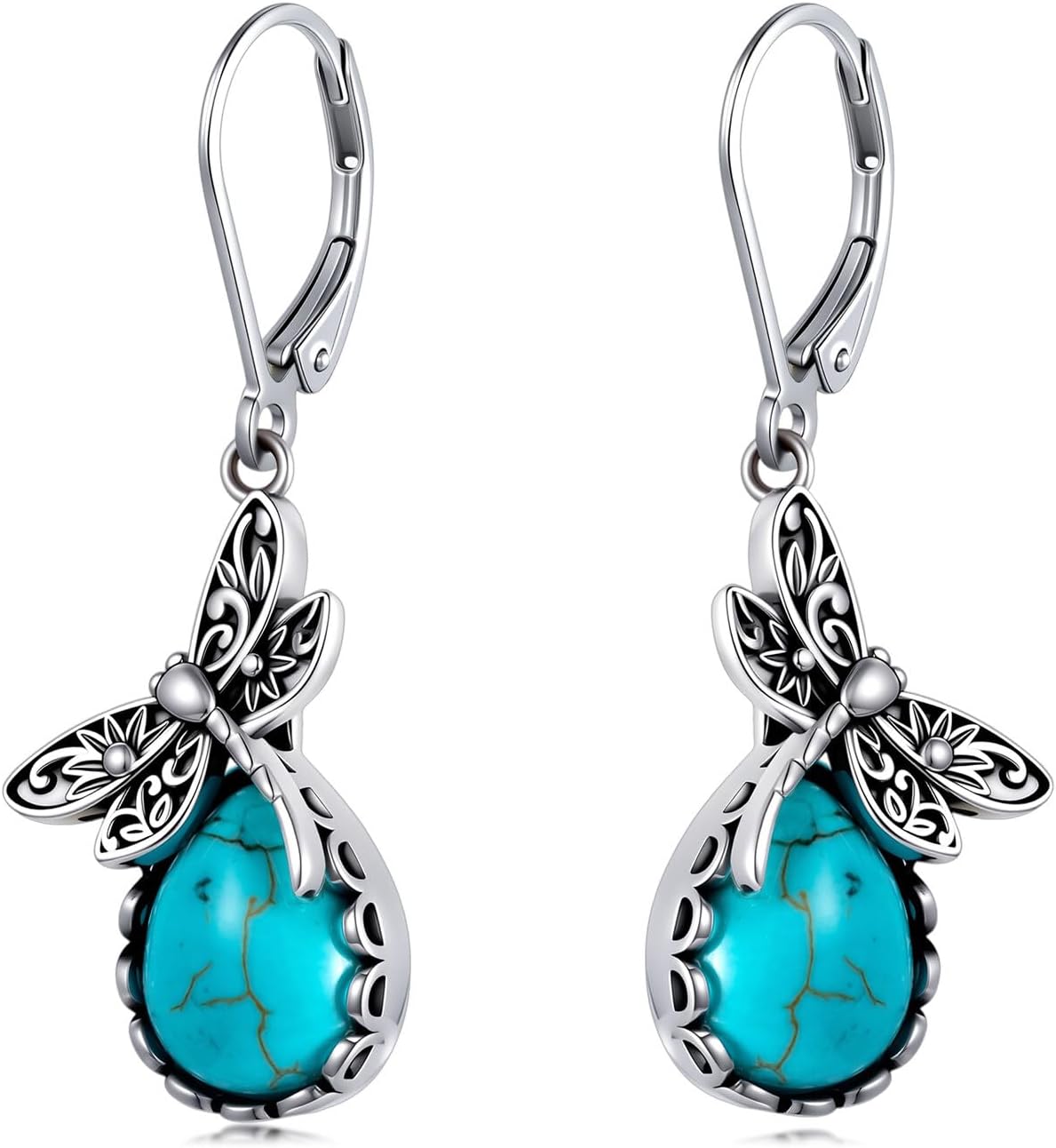 Dragonfly Earrings with Genuine Turquoise 925 Sterling Silver Dragonfly Earrings for Women Great Gift for Christmas Birthday