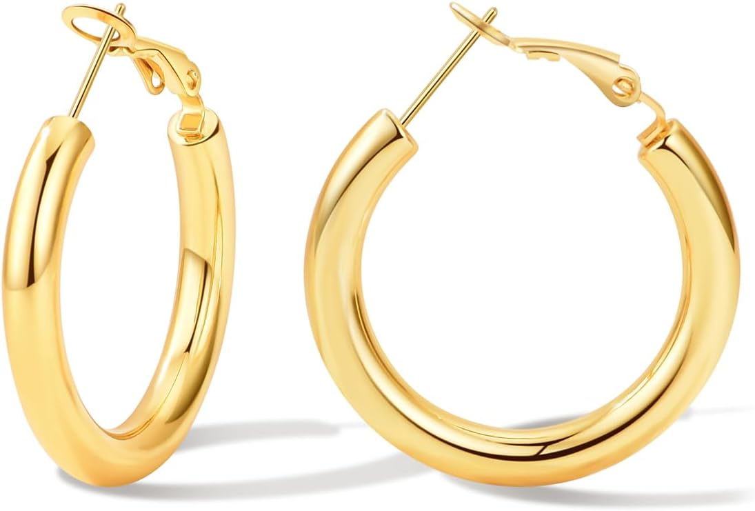 30MM Small Thick Gold Hoops Earrings for Women 14K Gold Plated Titanium Chunky Hoop Earrings