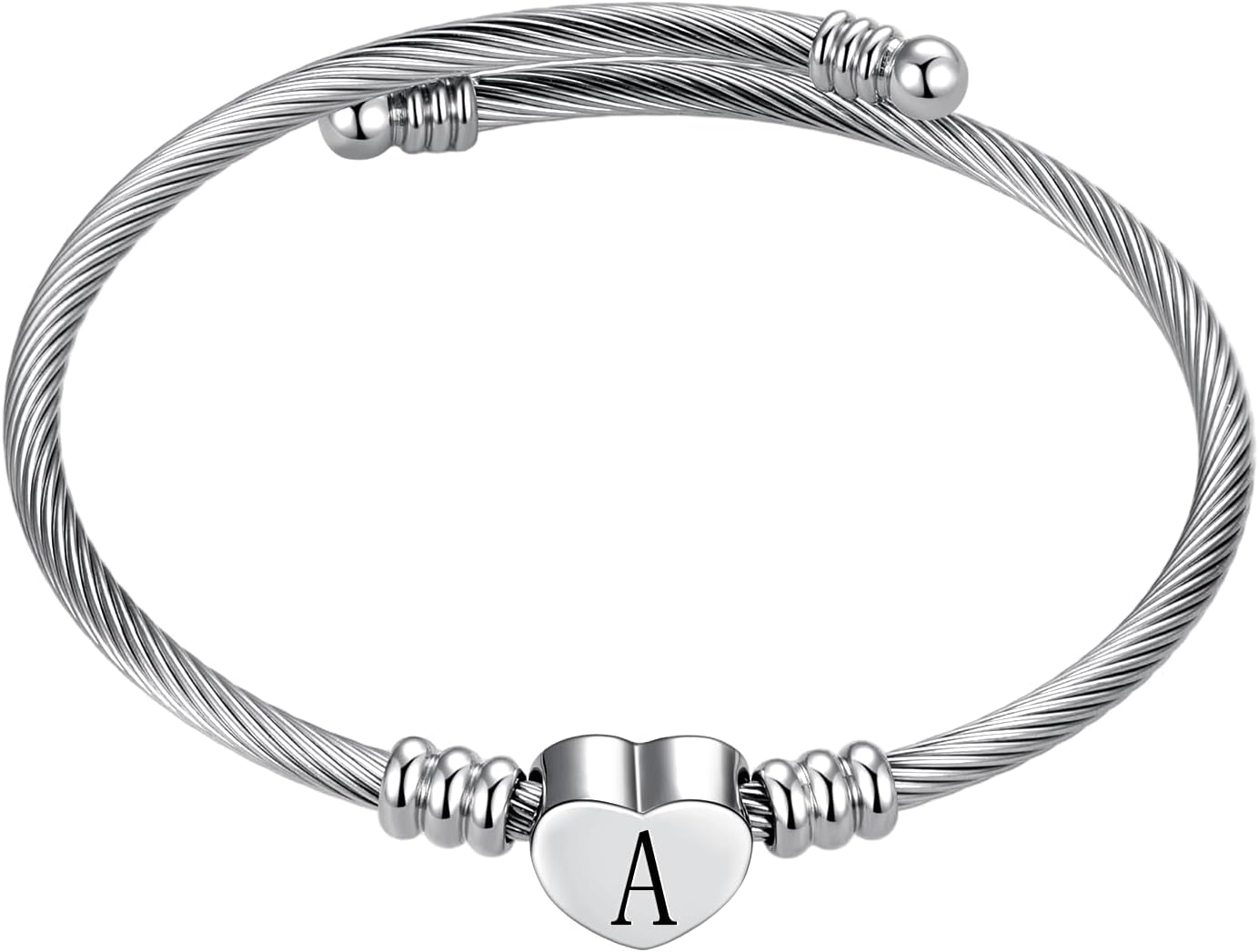 Women Name Initial Letter Bangle Bracelets Silver Alphabet A-Z Bangle Bracelets Birthday Jewelry