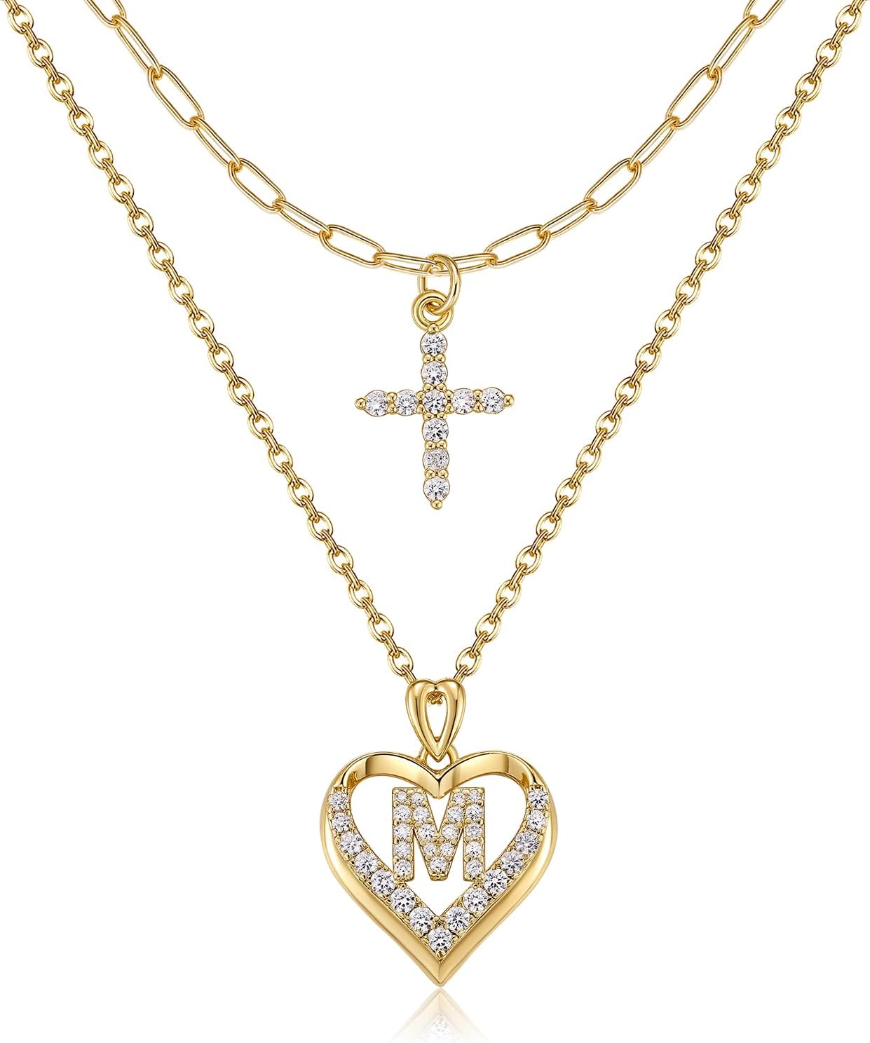 YOVIEE 14K Gold Plated Layering Necklaces,Heart Initial Layered Necklace Cross Pendant Necklace Charm Personalized Stackable Jewelry Gift for Her