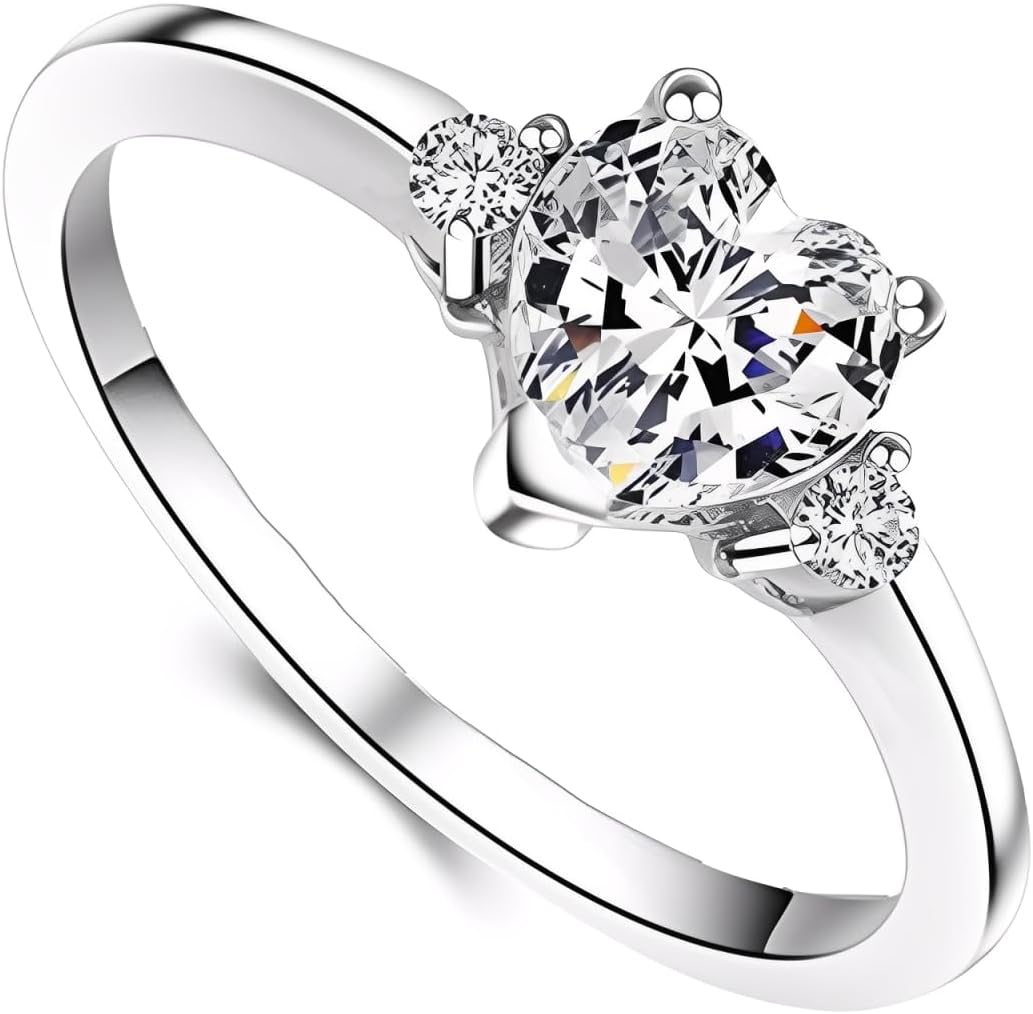 DIYA 1CT Moissanite Heart Cut Ring for Women 14K White Gold Plated Moissanite Heart Engagement Wedding Ring D Color VVS1 Promise Rings Anniversary Valentine's Day Jewelry Gifts for Her Wife Girlfriend
