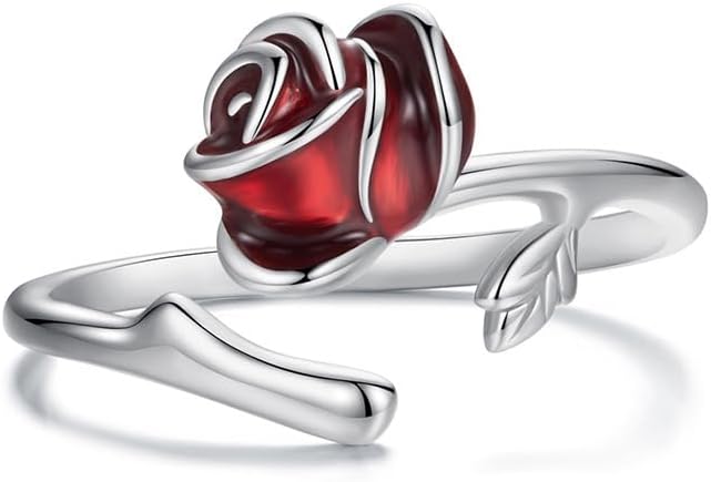 Valentine's Day Rose Flower Ring for Her 925 Sterling Silver Flower Ring Open Rings Valentine's Day Jewelry Gift for Women
