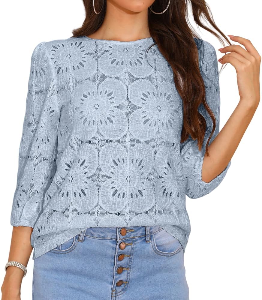 Boho Eyelet Lace Crochet Tops for Women Dressy Casual Summer Fall Fashion Lightweight Tops&Blouses